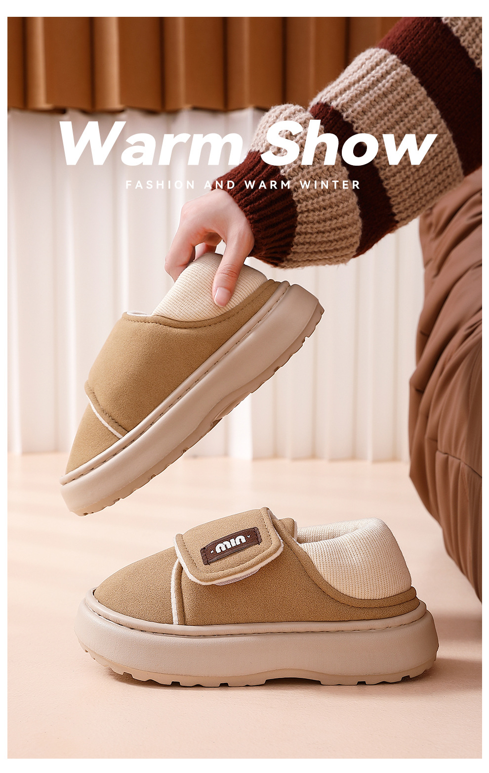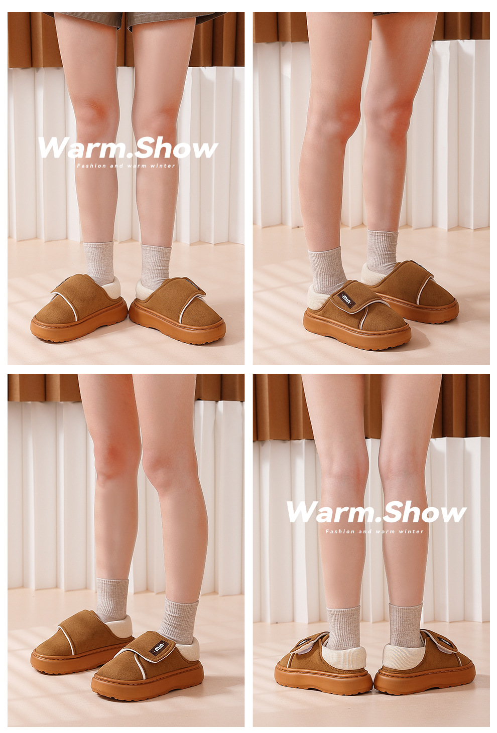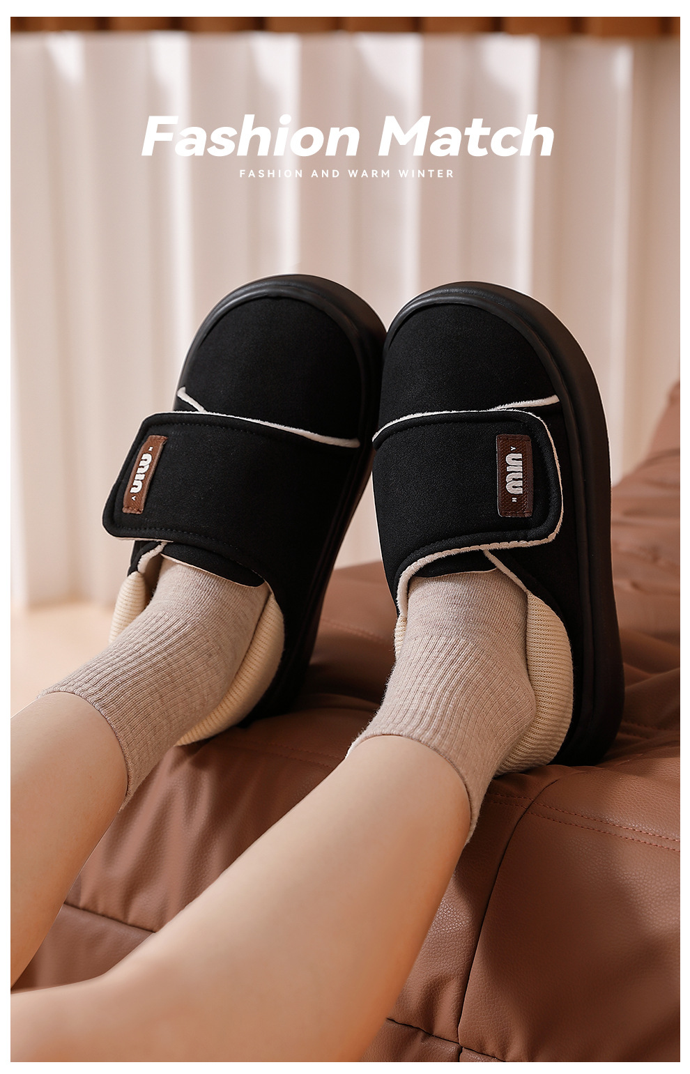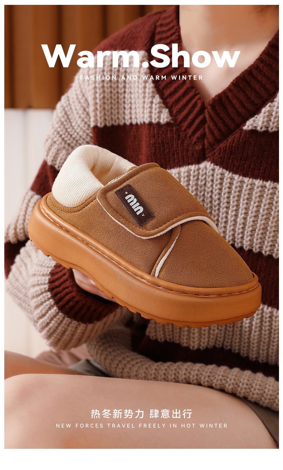 時尚女士棉鞋居家保暖月子鞋冬季室內防滑魔術貼厚底棉拖鞋女