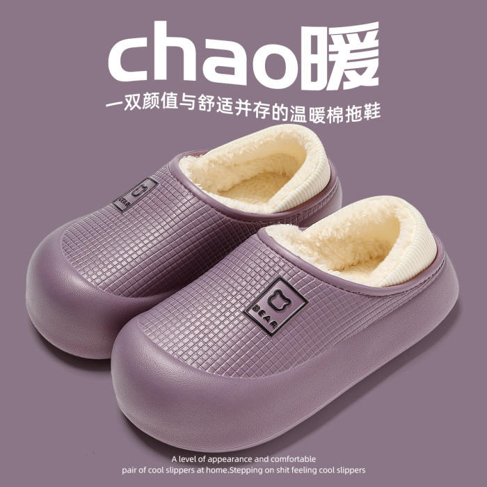 毛絨棉鞋女冬季情侶居家室內保暖包跟防水防滑兩穿棉拖鞋男冬
