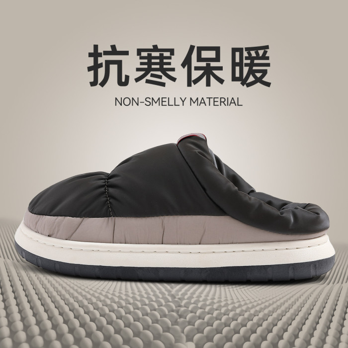 羽絨棉拖鞋男士秋冬季2024新款室內家居防滑厚底保暖踩屎感棉拖男
