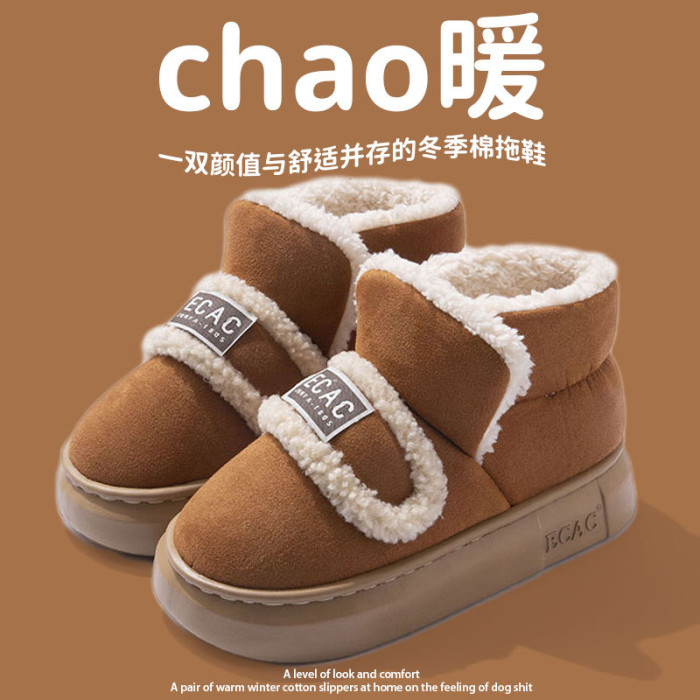 棉拖鞋男士冬季新款家用保暖棉鞋情侶包跟厚底加絨外穿雪地靴女款