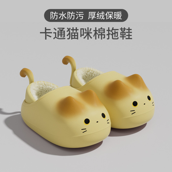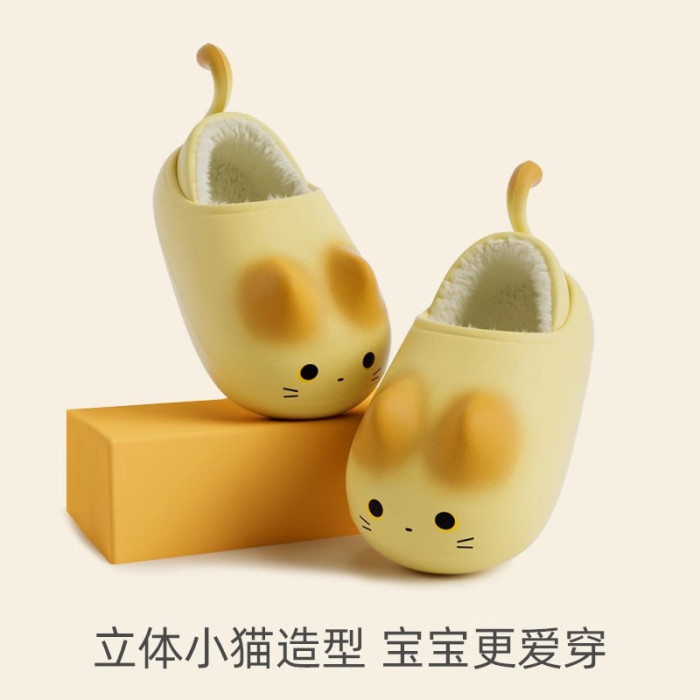 可愛貓咪棉拖鞋女童秋冬季室內男童拖鞋厚絨保暖防水卡通兒童棉鞋
