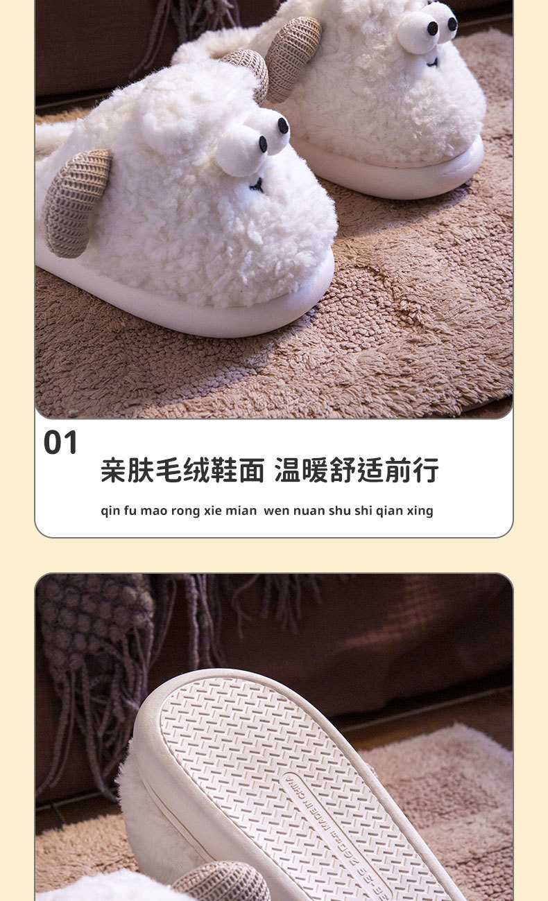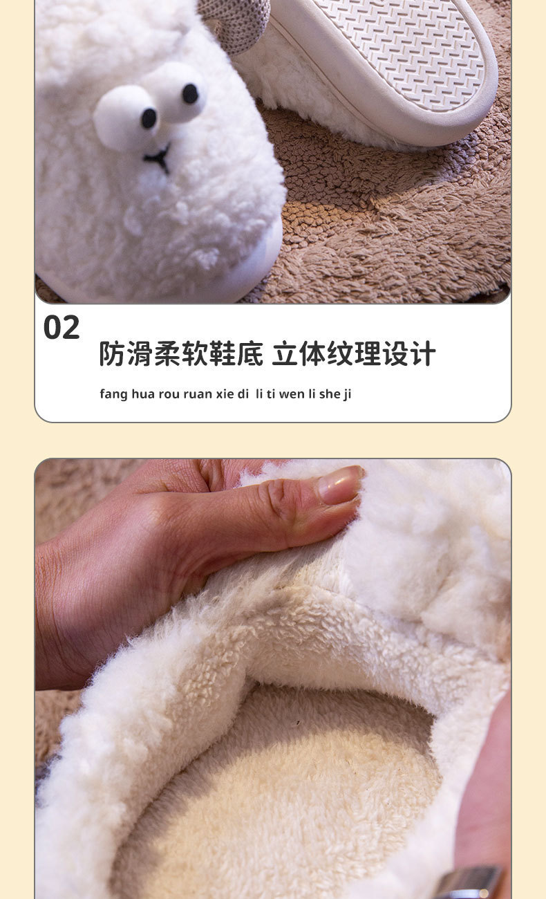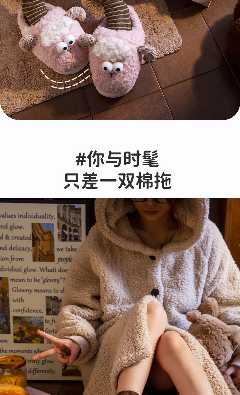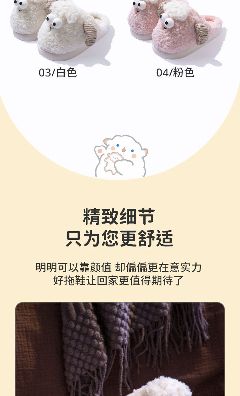可愛綿羊棉拖鞋女士秋冬季2024新款家居室內加絨加厚卡通情侶拖鞋