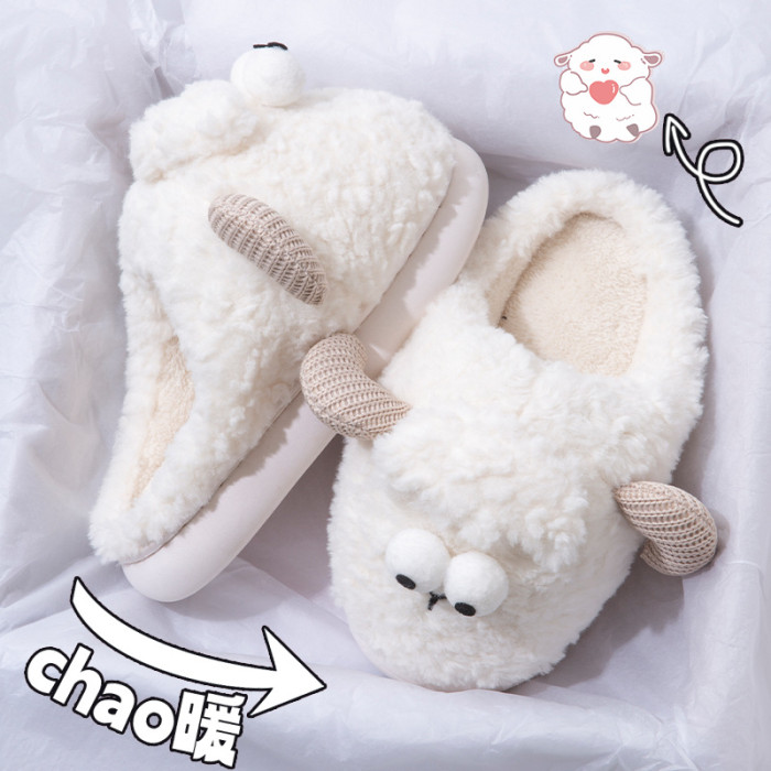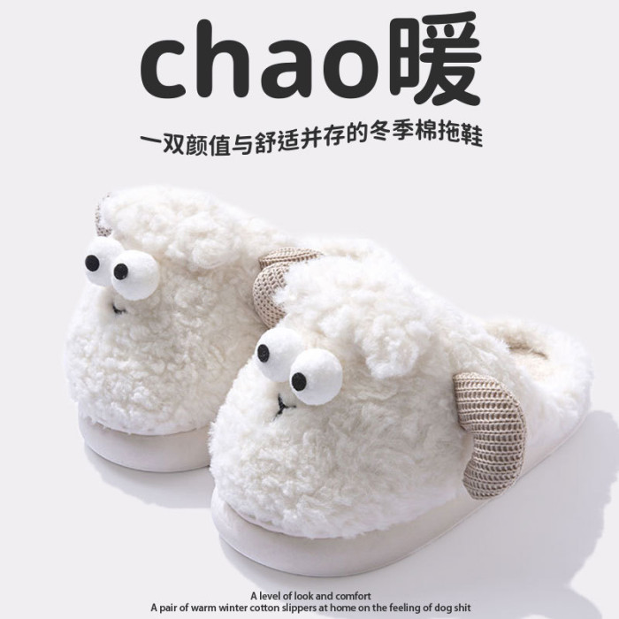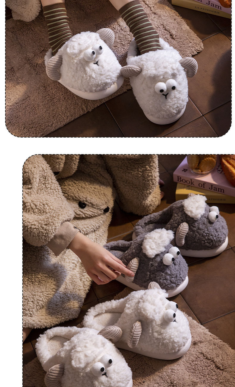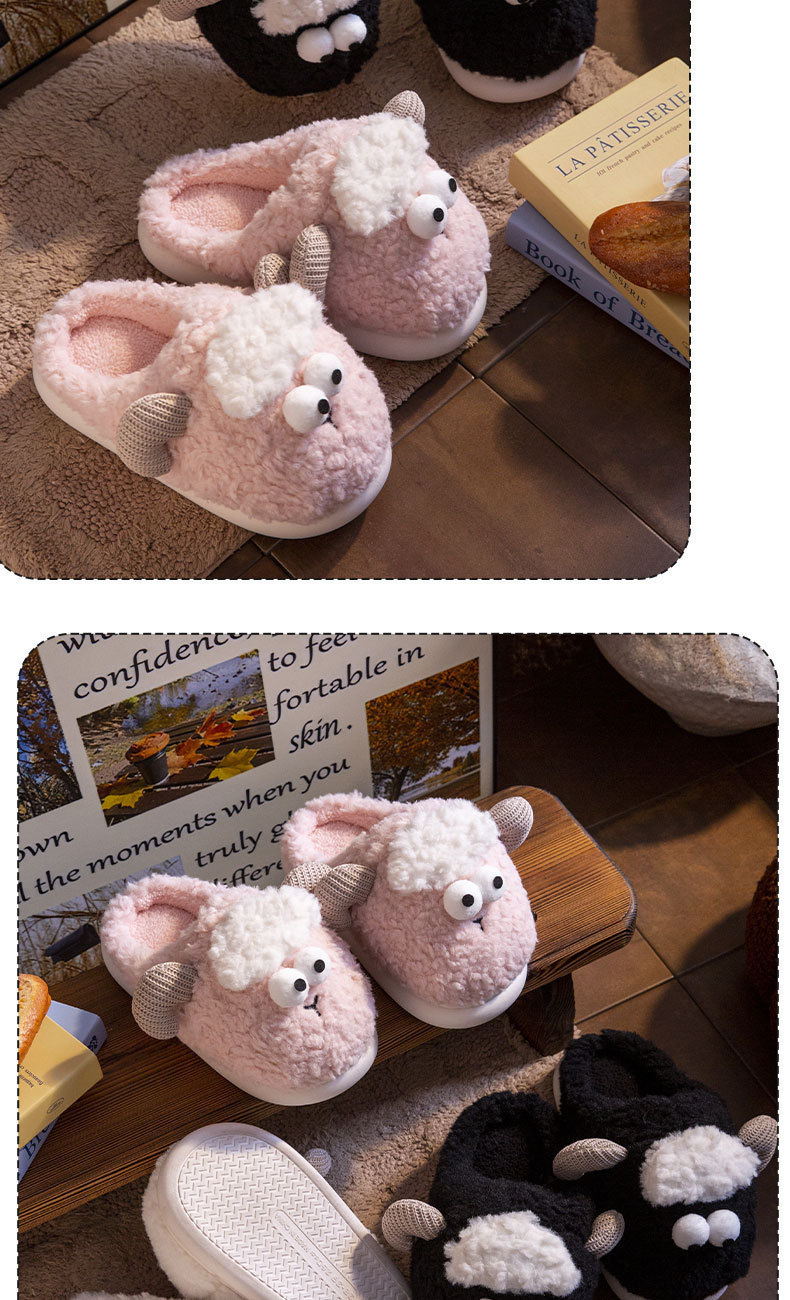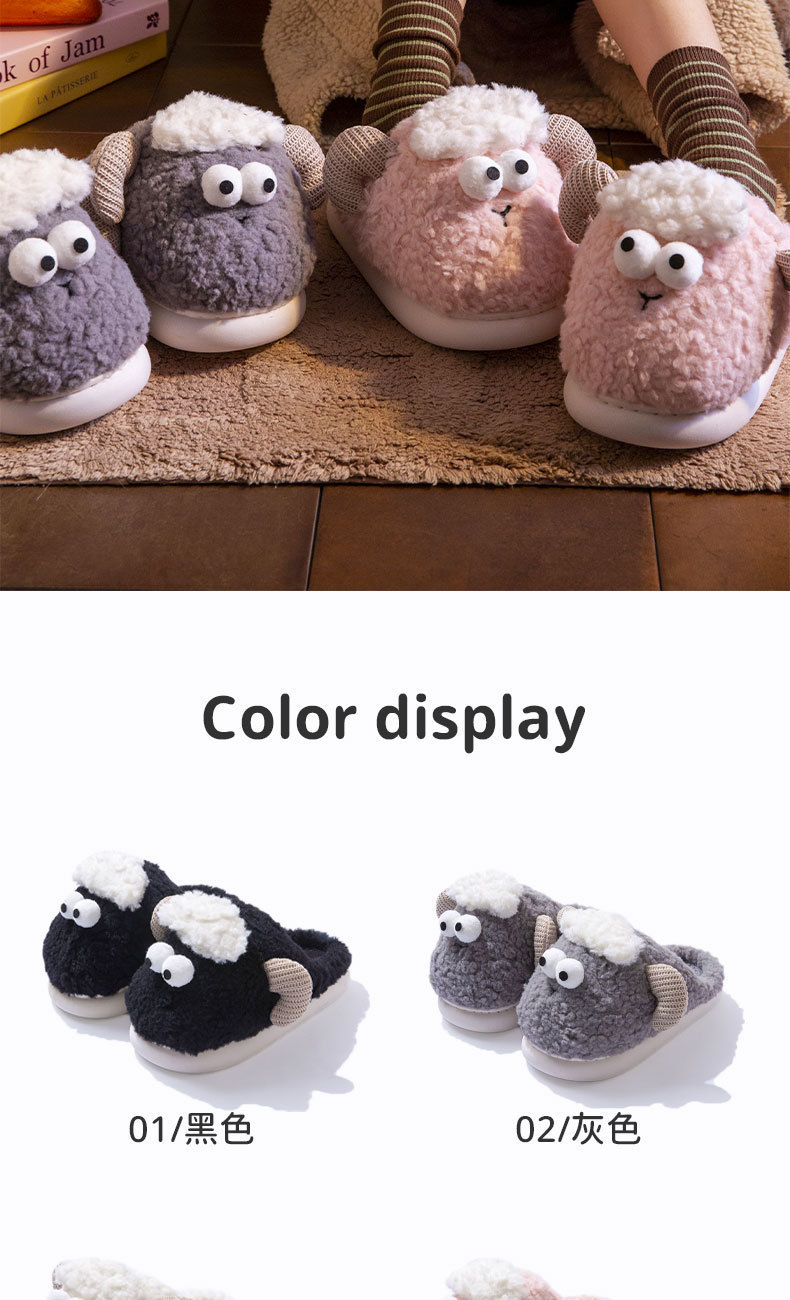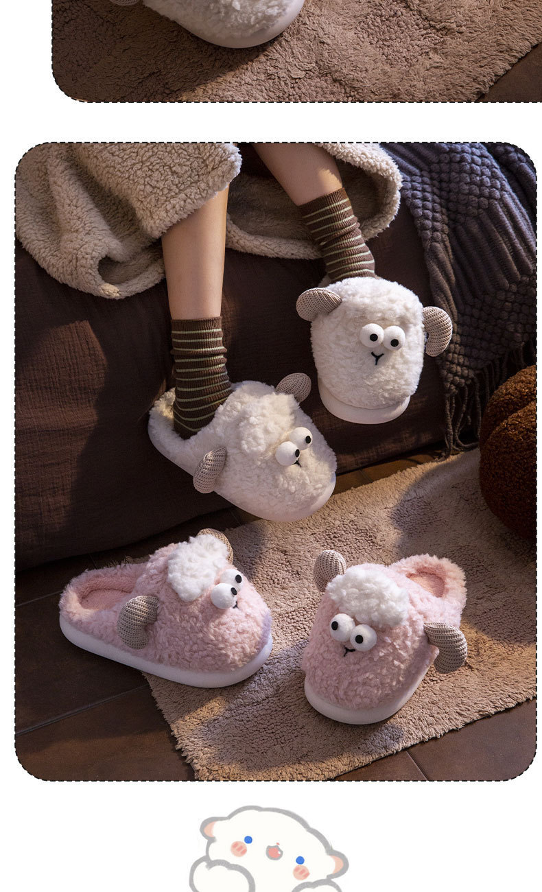 可愛綿羊棉拖鞋女士秋冬季2024新款家居室內加絨加厚卡通情侶拖鞋