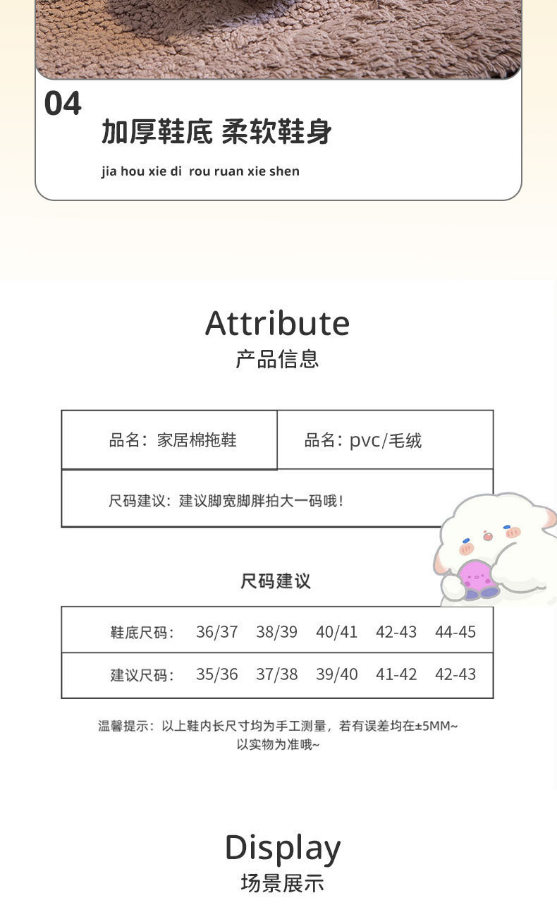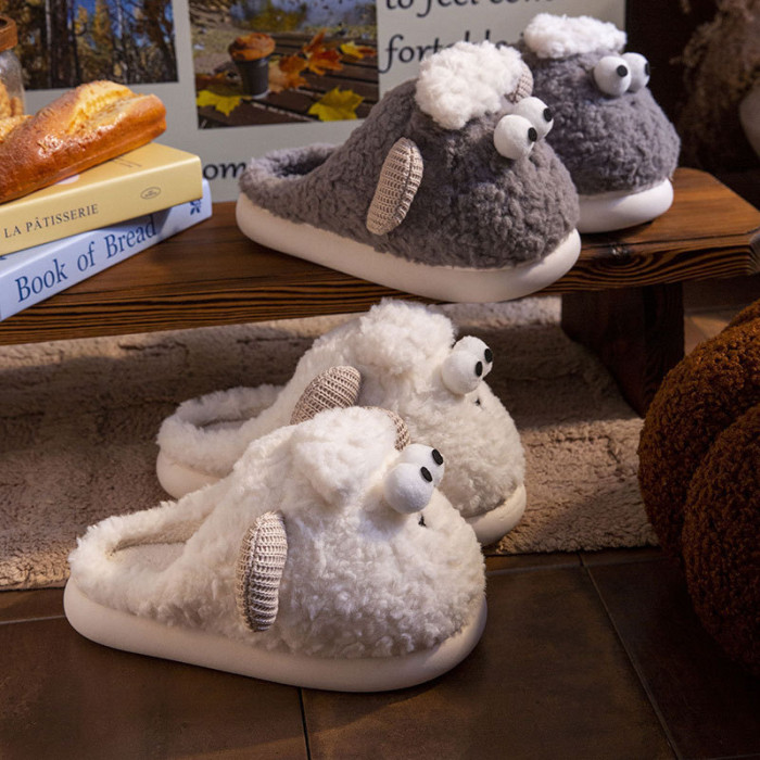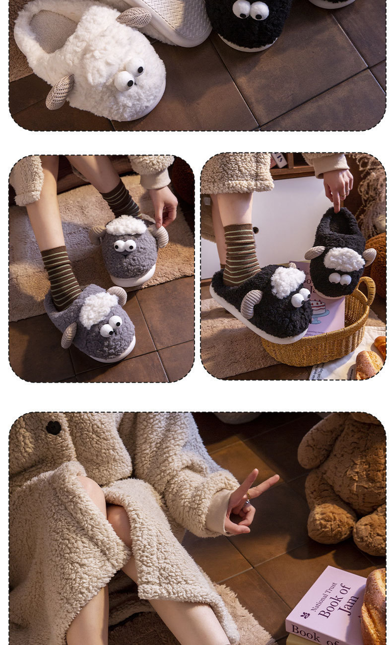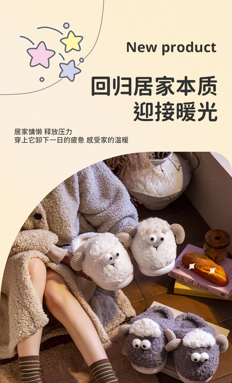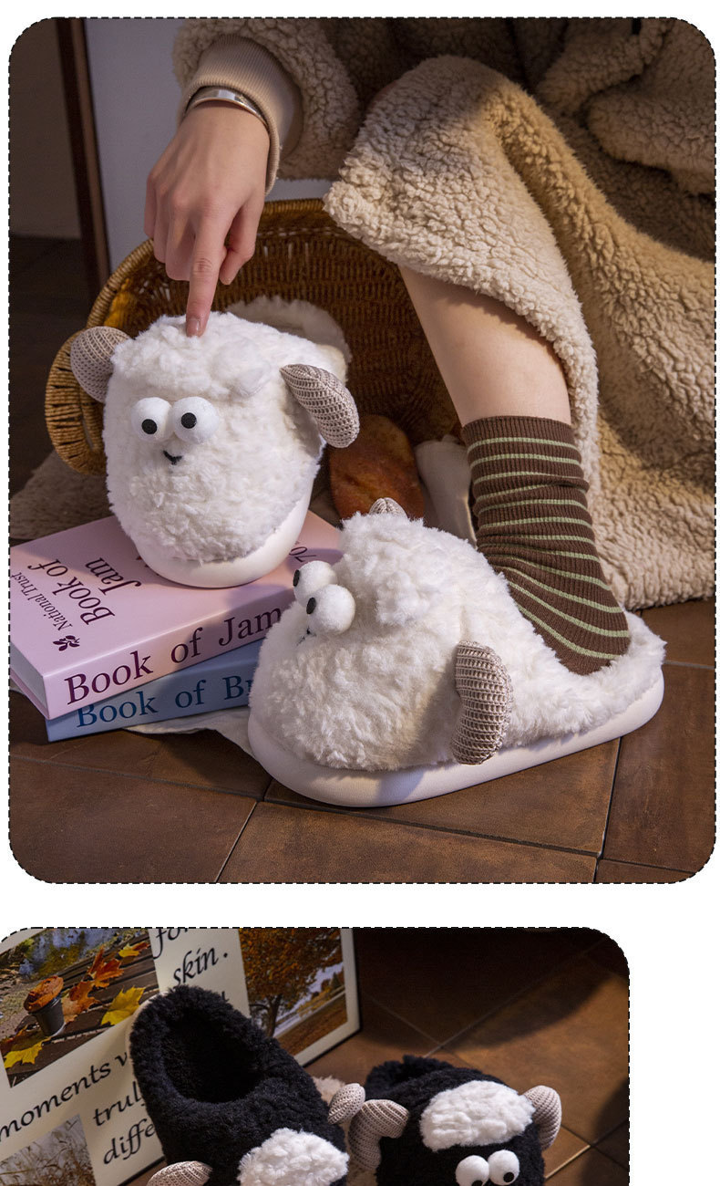 可愛綿羊棉拖鞋女士秋冬季2024新款家居室內加絨加厚卡通情侶拖鞋