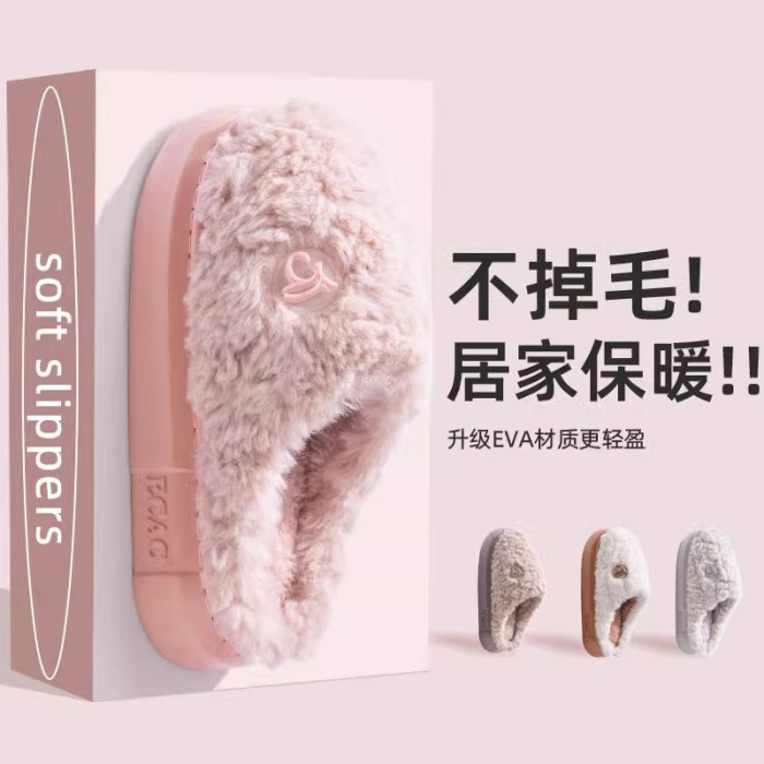 踩屎感棉拖鞋女秋冬季新款室內家用地板防滑情侶加絨厚底棉拖男士