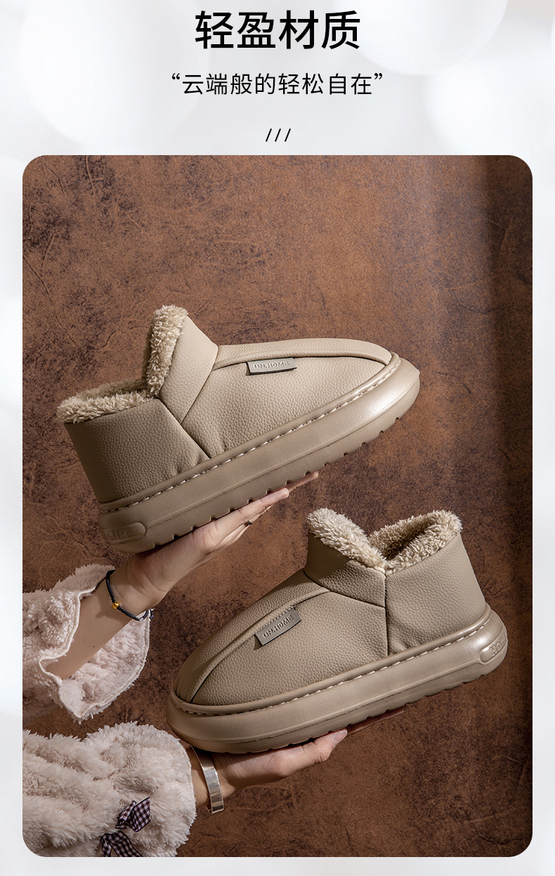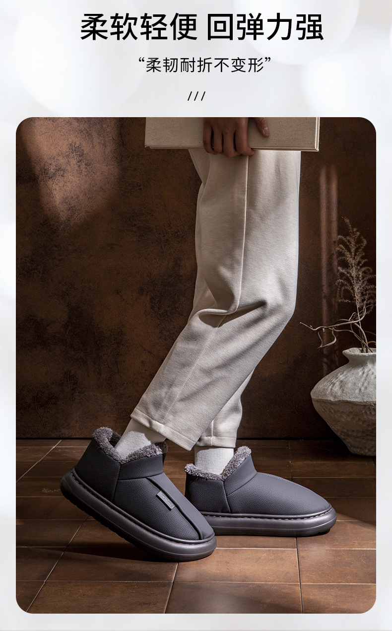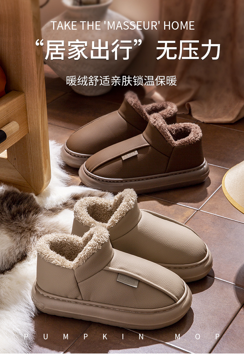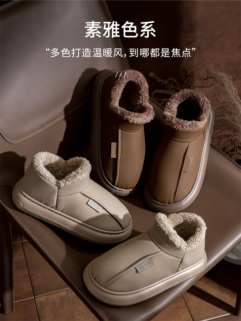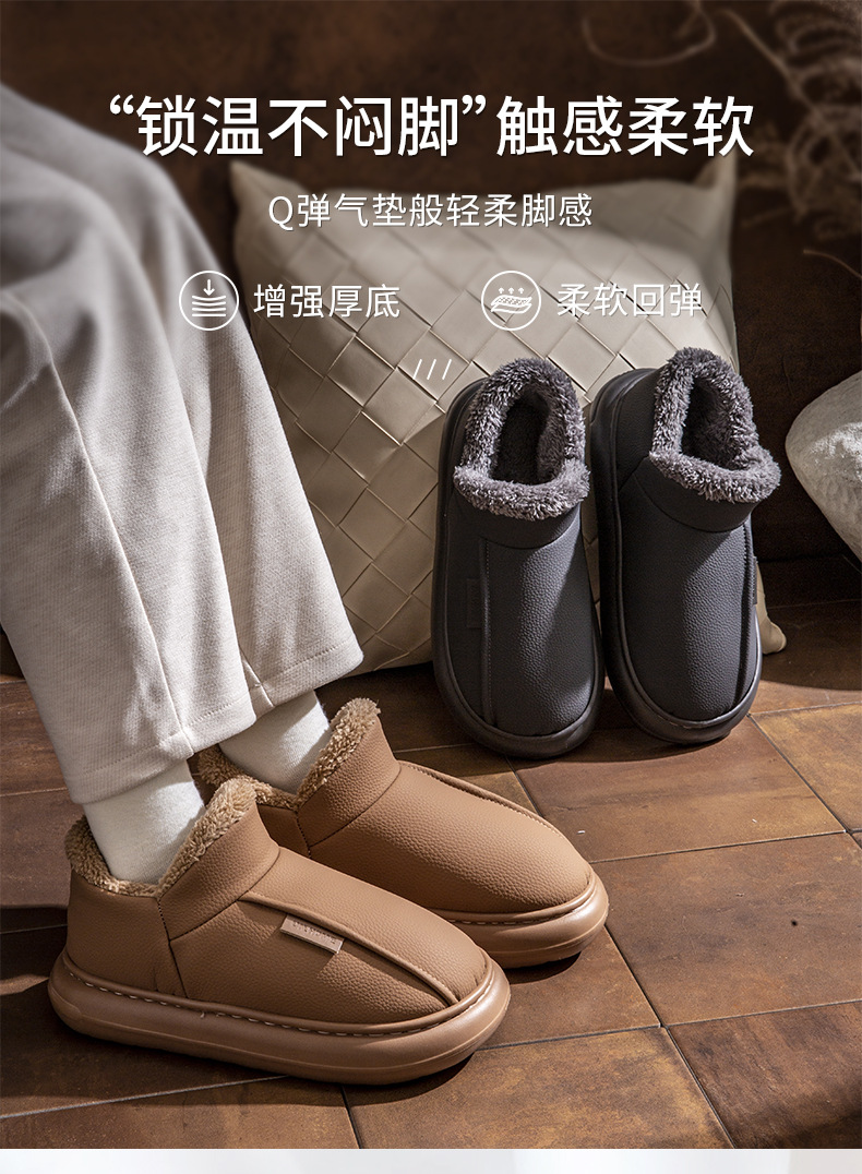 男士棉鞋秋冬季新款家用室內厚底加絨保暖PU防水包跟棉拖鞋女外穿
