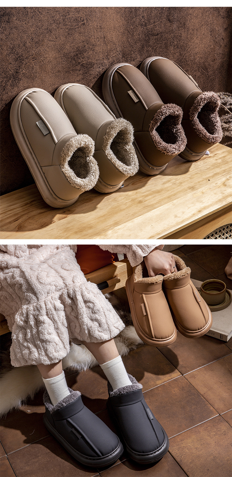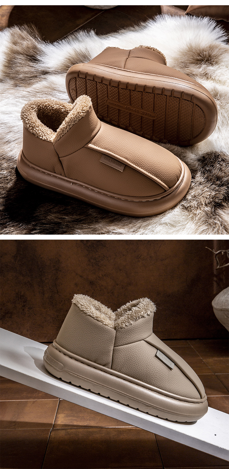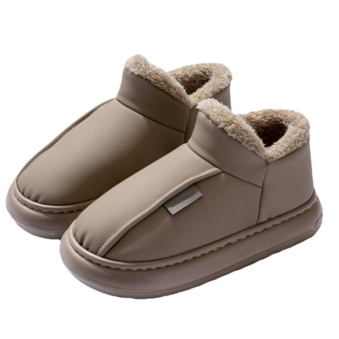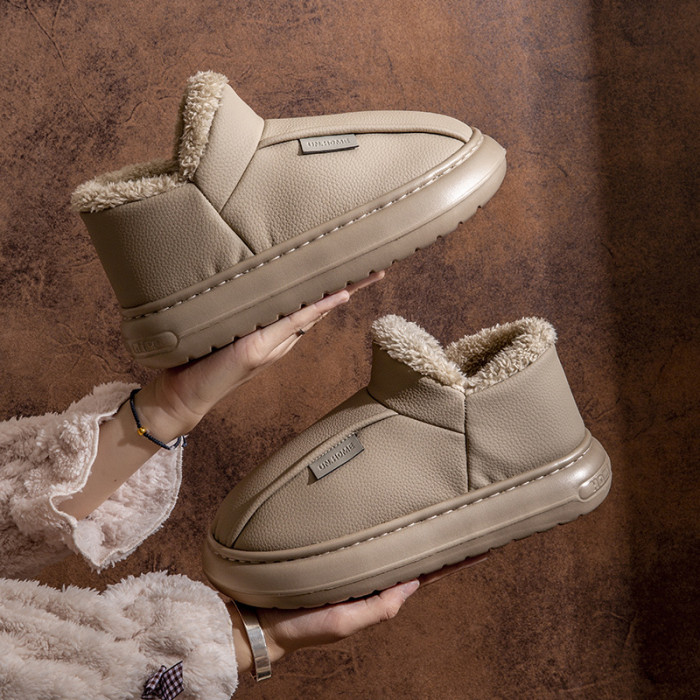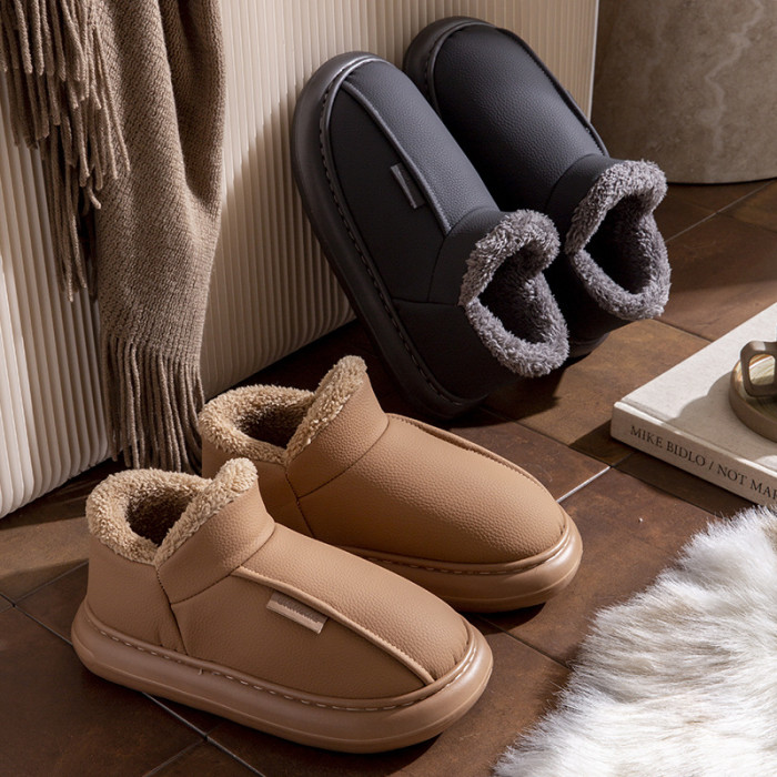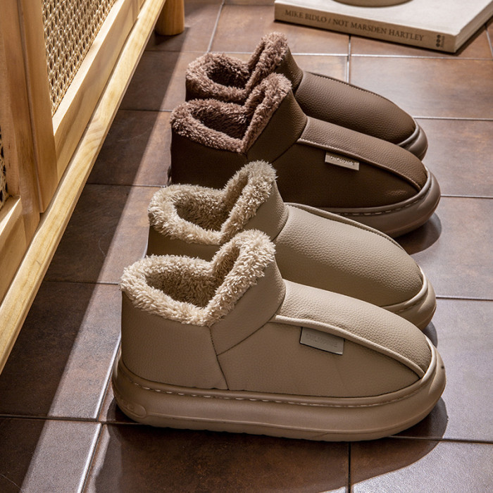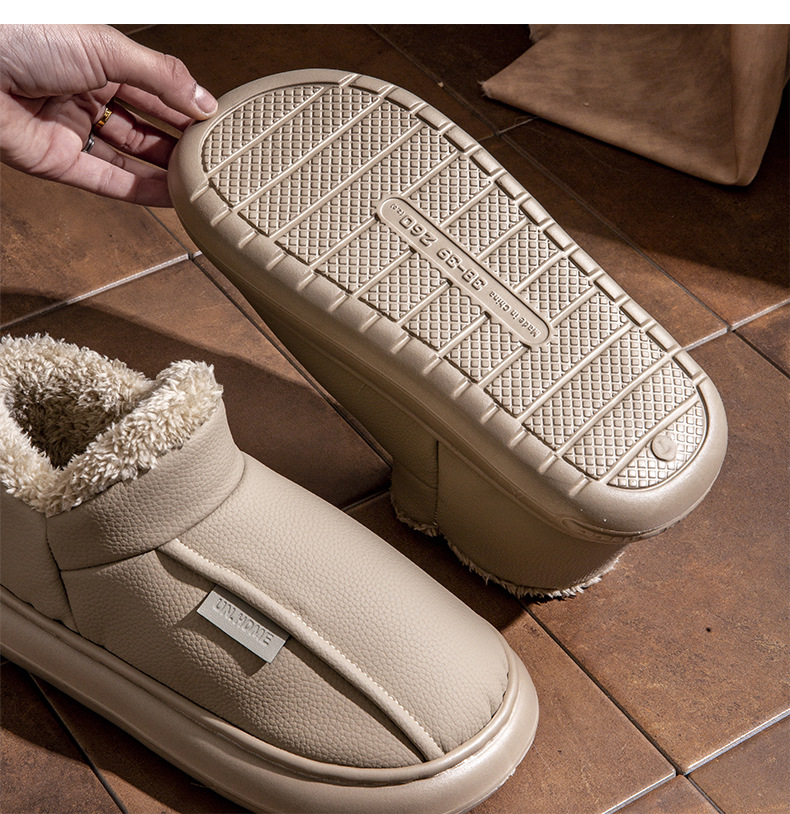 男士棉鞋秋冬季新款家用室內厚底加絨保暖PU防水包跟棉拖鞋女外穿