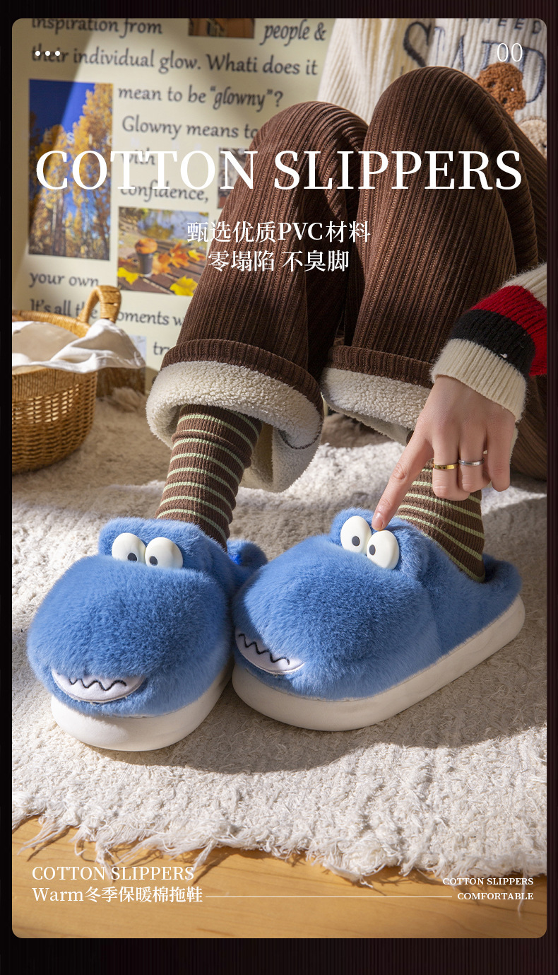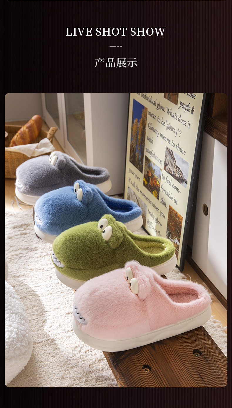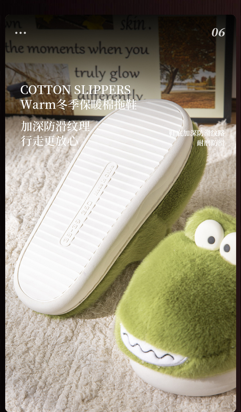 卡通恐龍棉拖鞋男秋冬季2024新款室內防滑保暖情侶家居厚底棉拖女