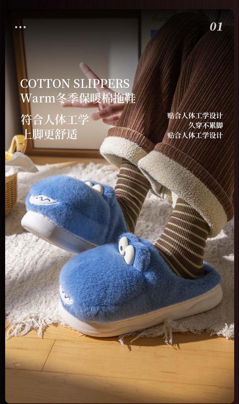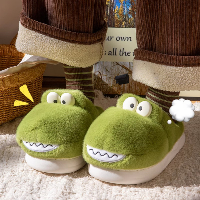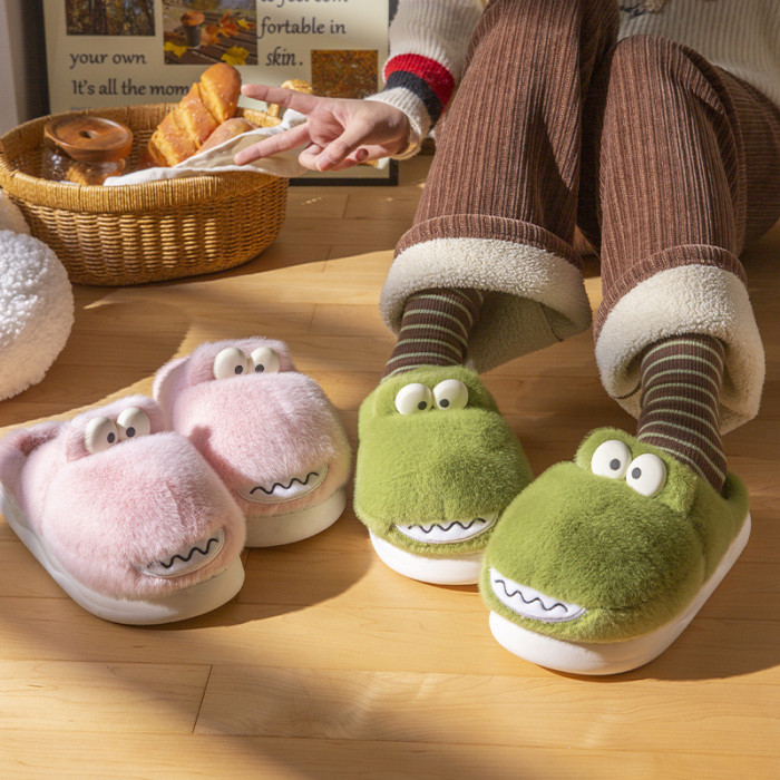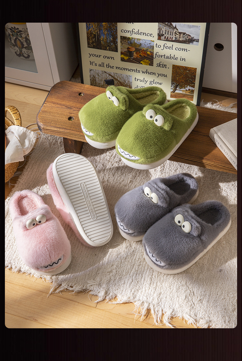 卡通恐龍棉拖鞋男秋冬季2024新款室內防滑保暖情侶家居厚底棉拖女