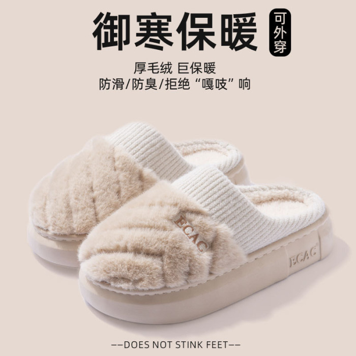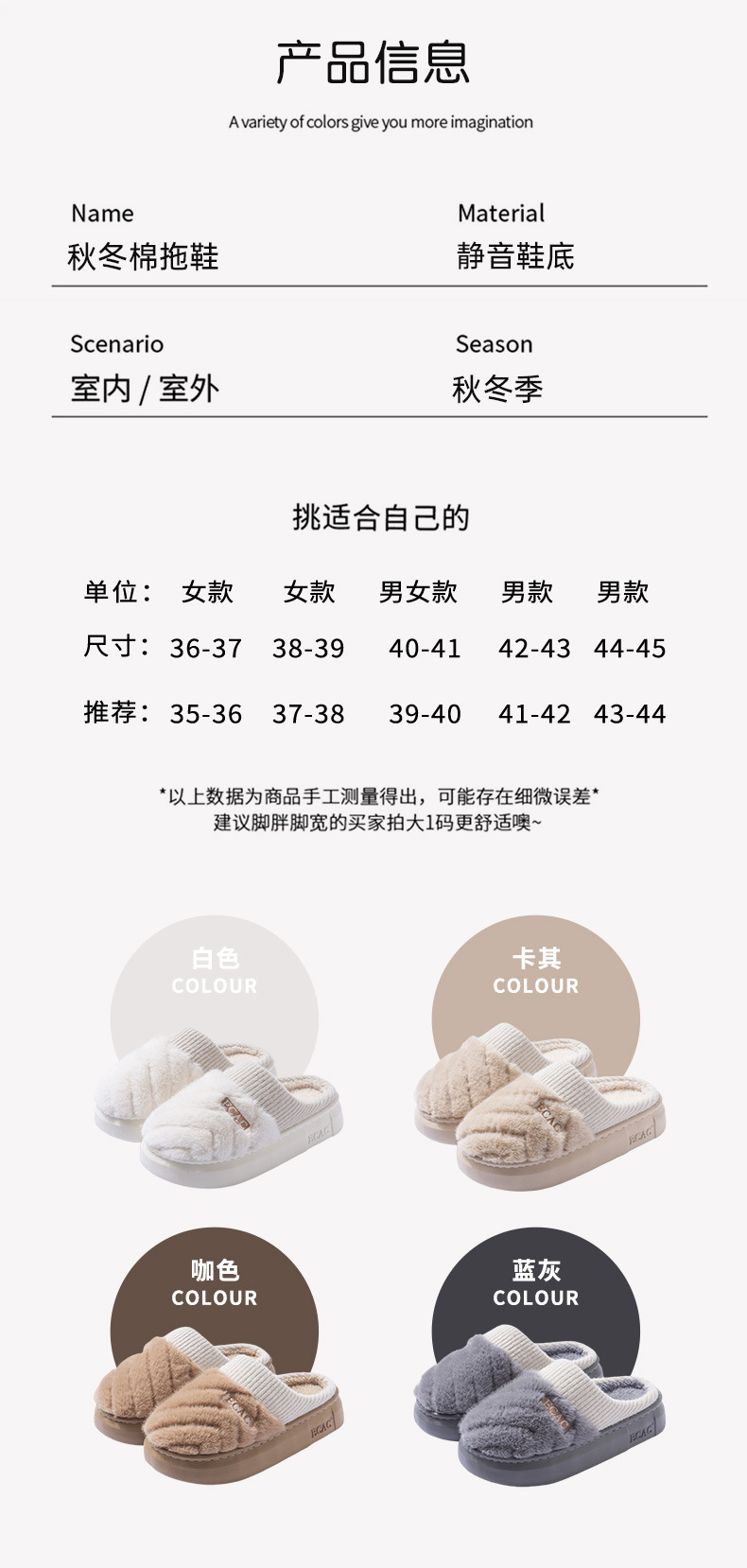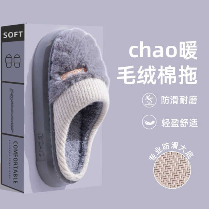 棉拖鞋女冬天室內居家保暖加絨情侶家用防滑厚底毛毛拖鞋男秋冬季