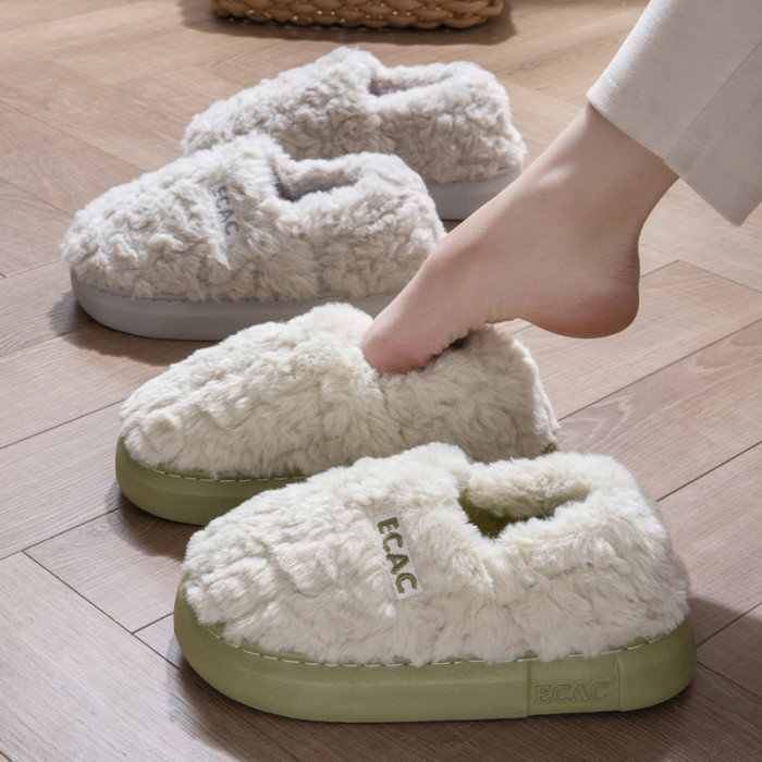 棉拖鞋女士冬季包跟2024新款室內家居防滑厚底毛毛加絨保暖棉鞋男