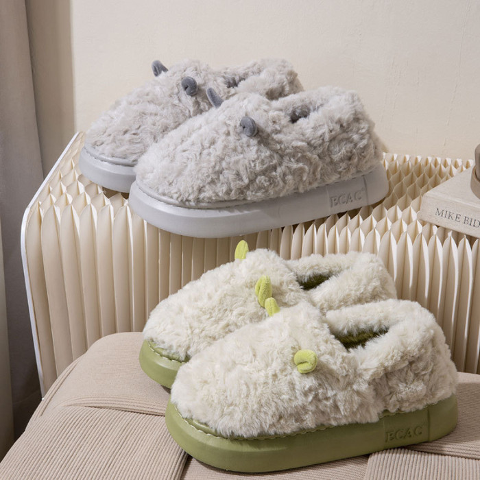 棉拖鞋女士冬季室內家居毛絨包跟保暖可愛厚底加絨外穿情侶棉鞋男