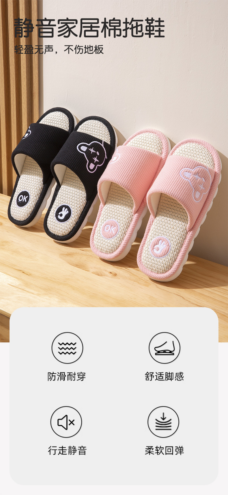 亞麻拖鞋女秋冬季室內家居防滑防臭厚底四季家用棉麻布地板拖鞋男