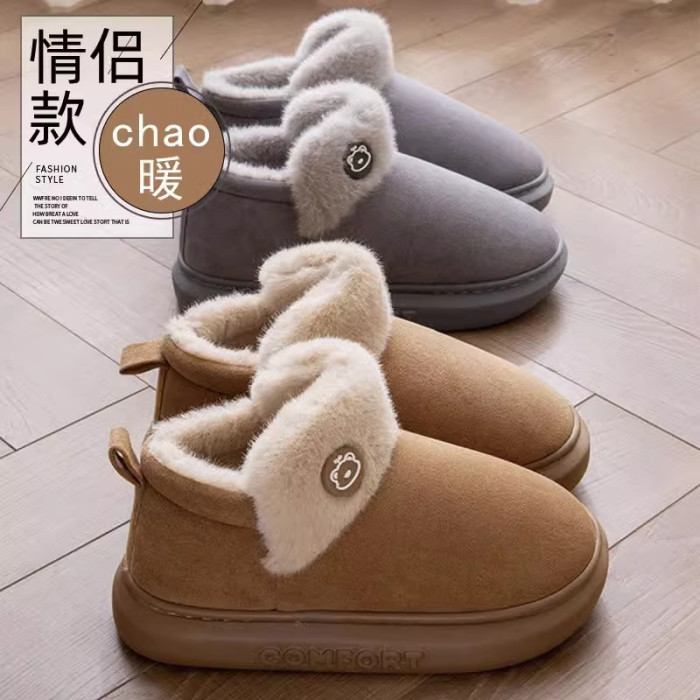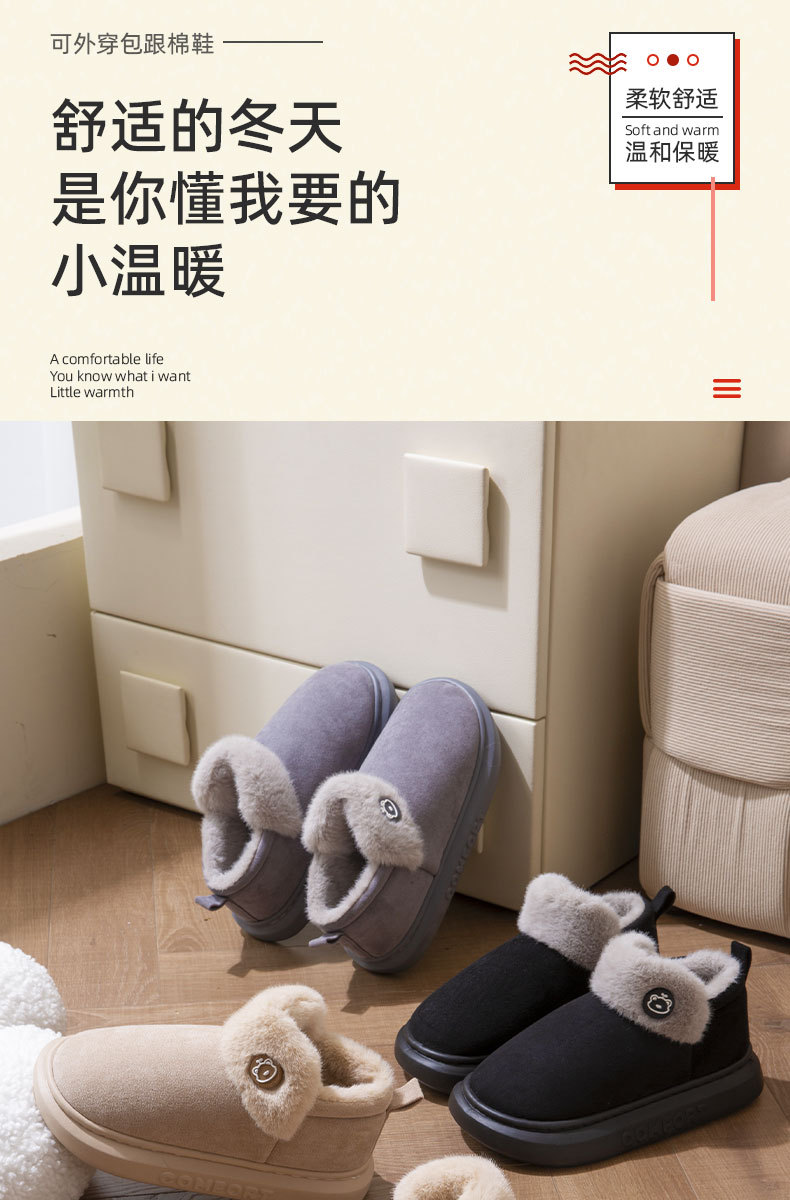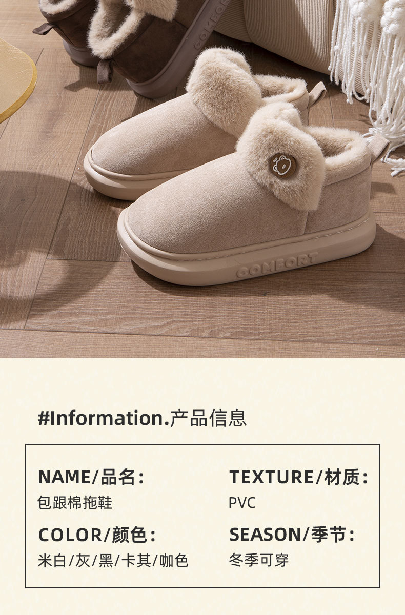棉拖鞋女秋冬季包跟2024新款室內家居保暖毛毛絨棉鞋男士冬天外穿