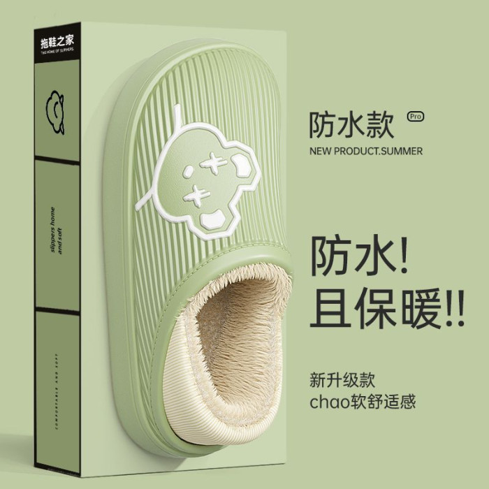 防水棉拖鞋女秋冬季新款室內家居厚底防滑情侶外穿保暖包跟棉鞋男
