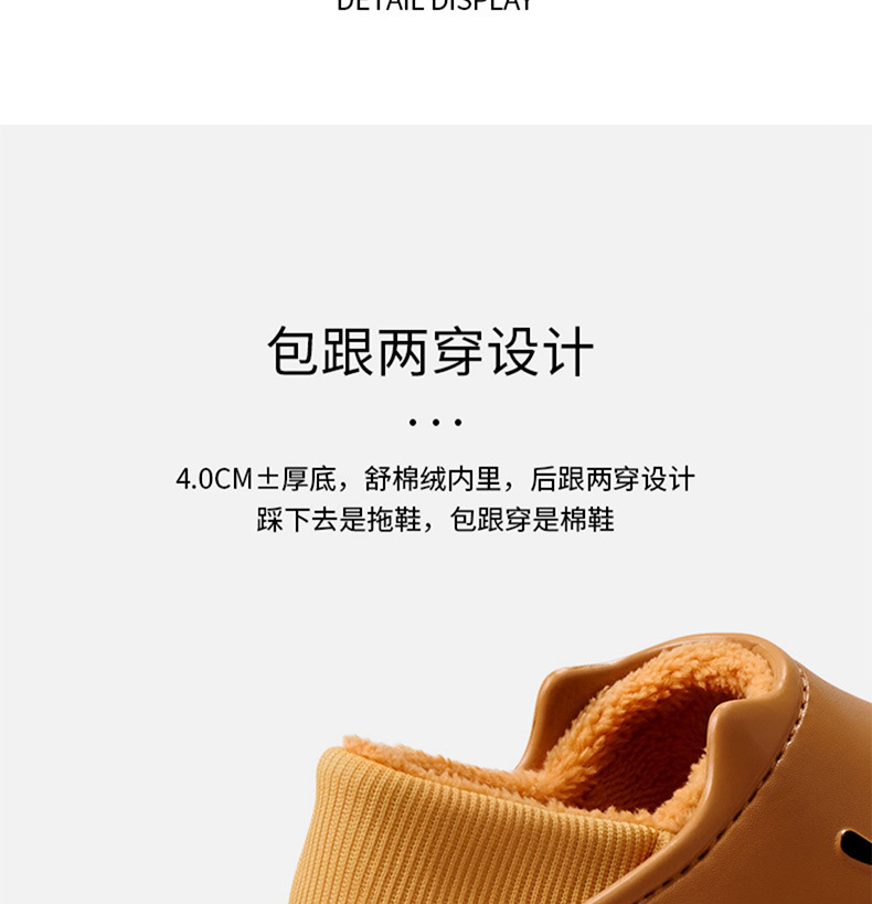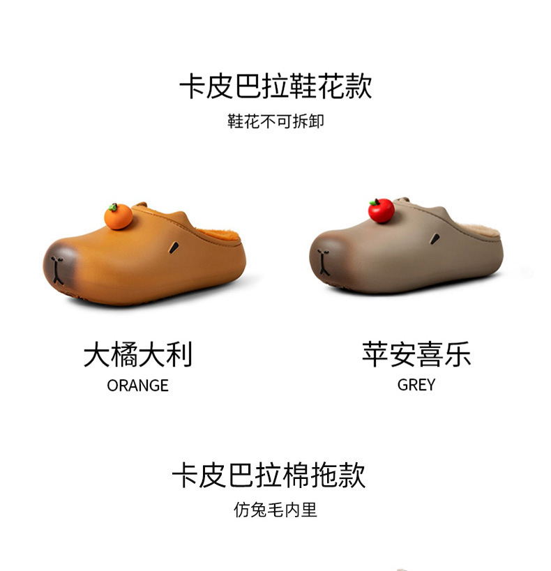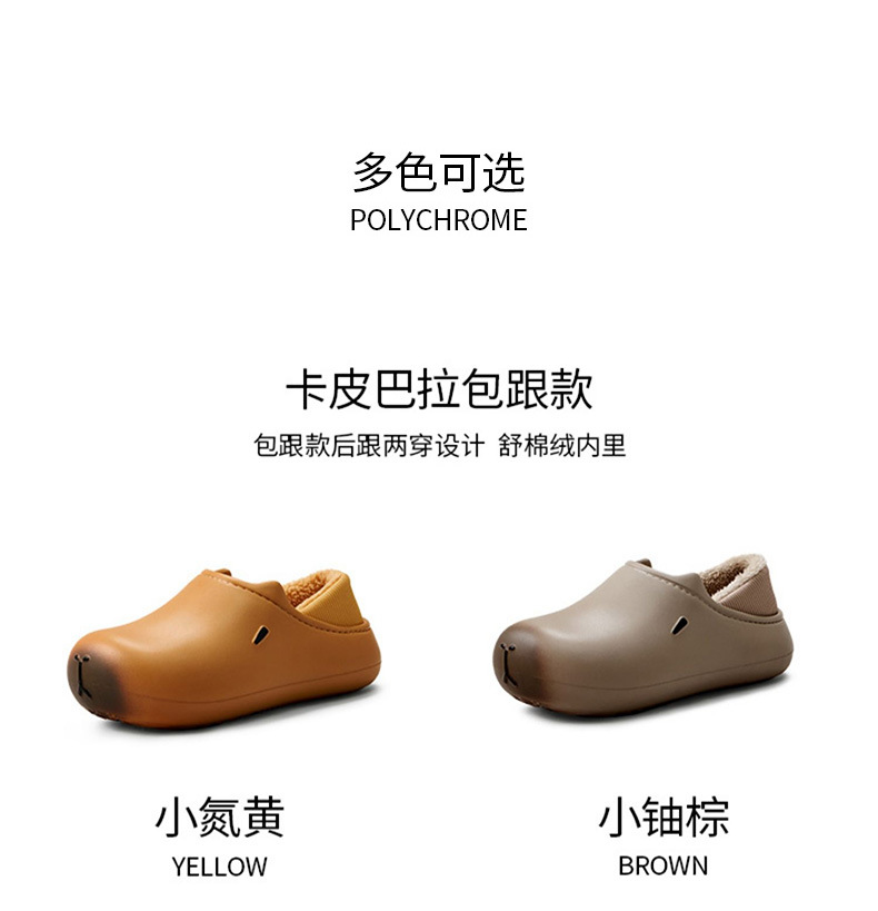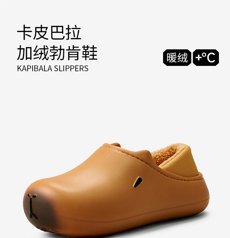 卡皮巴拉勃肯鞋加絨包跟棉拖鞋女冬季保暖家居情侶防水男棉鞋外穿