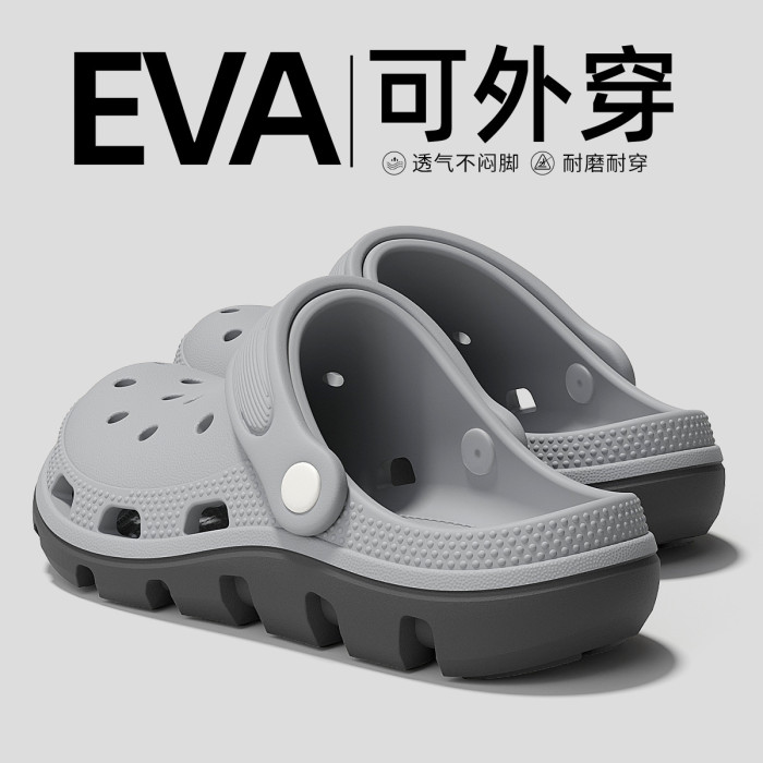 洞洞鞋男夏季外穿透氣踩屎感厚底情侶家居防滑包頭eva拖鞋女