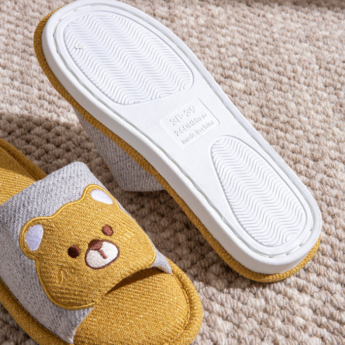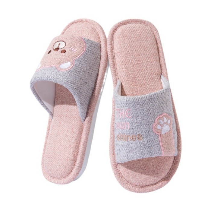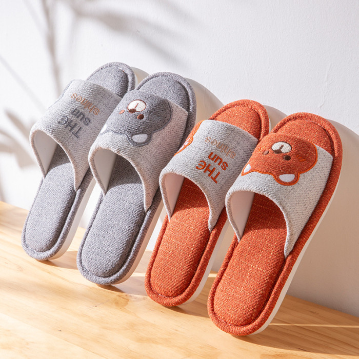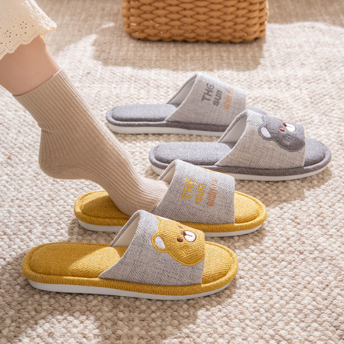 四季通用棉麻布拖鞋女春秋款卡通可愛室內居家地板靜音亞麻拖鞋男