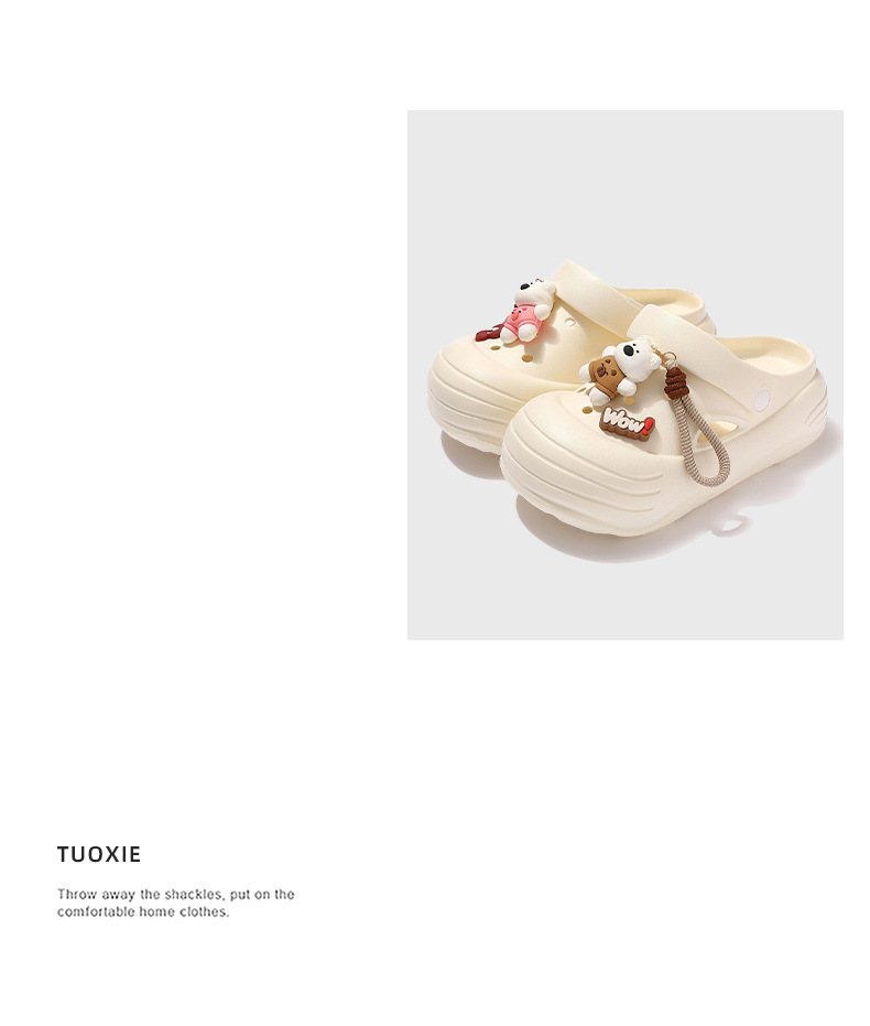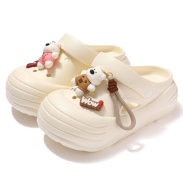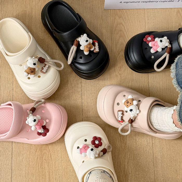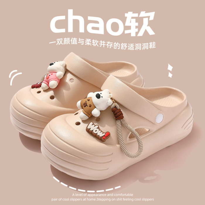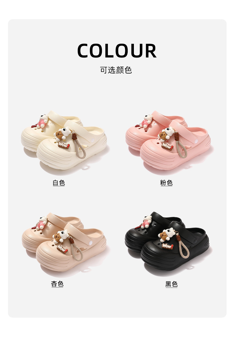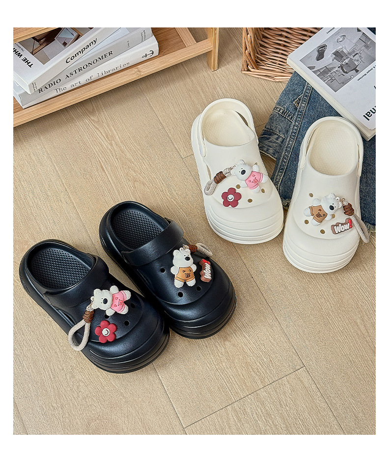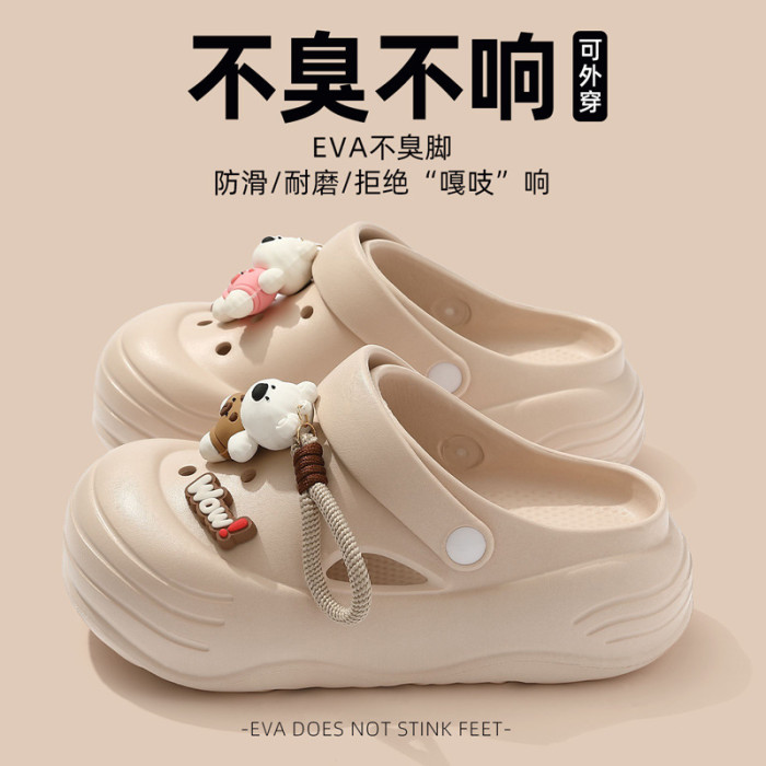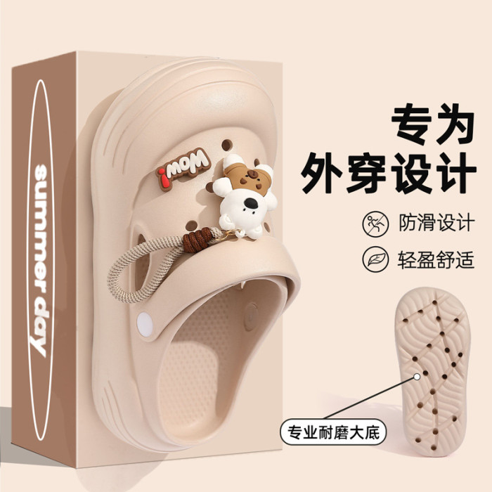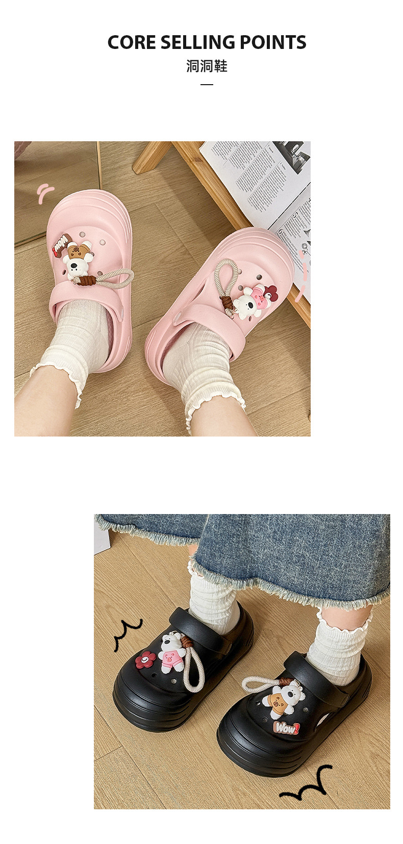 2025春夏新品洞洞鞋可愛小熊掛飾EVA涼拖女外穿防滑透氣一字拖鞋