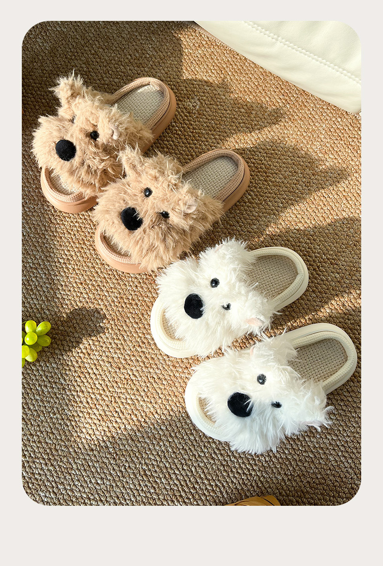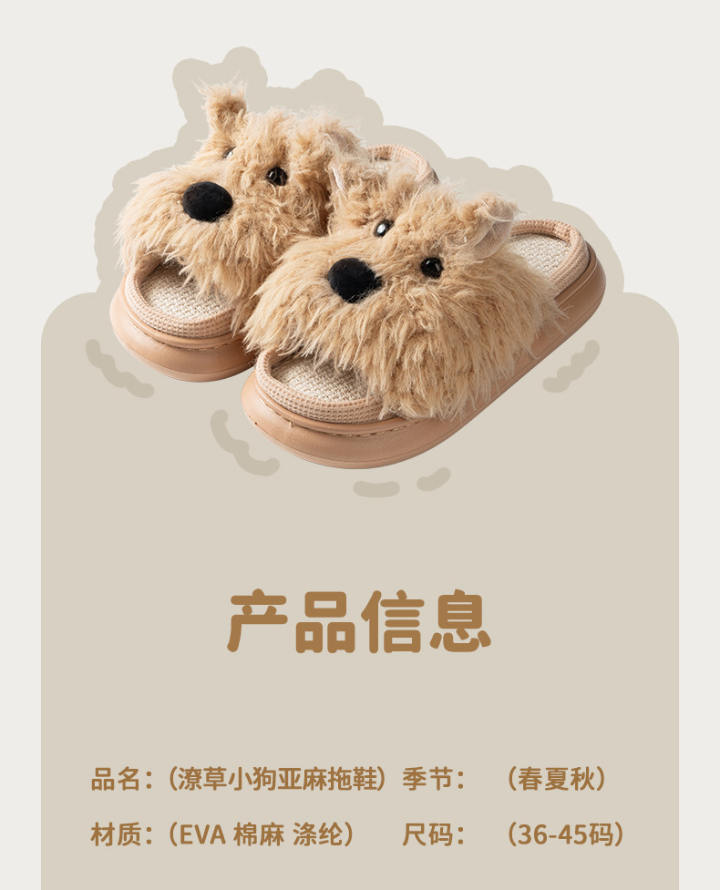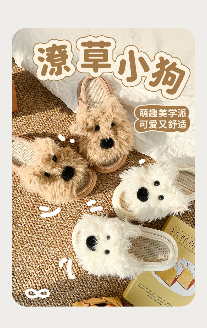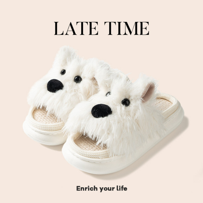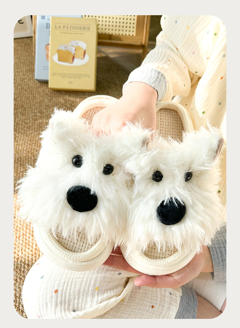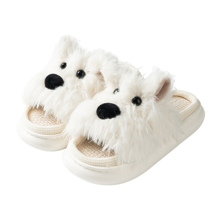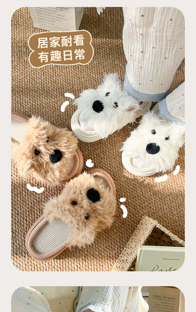 可愛卡通潦草小狗西高地亞麻拖鞋女2025新款四季通用室內居家棉麻