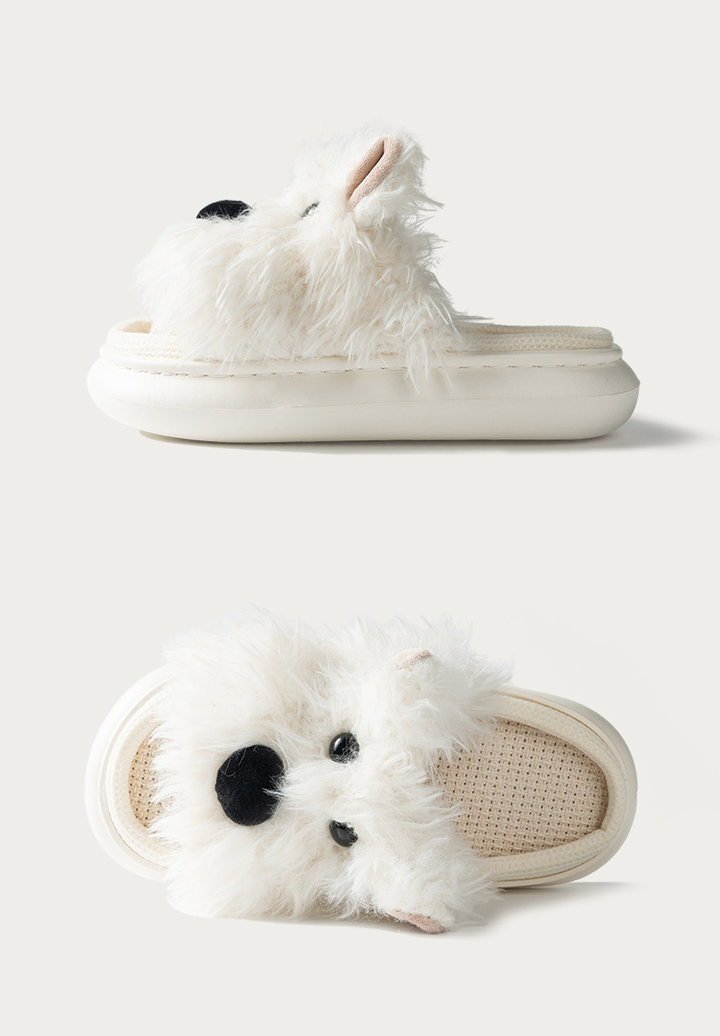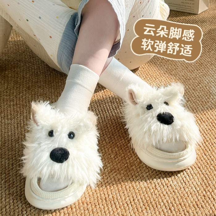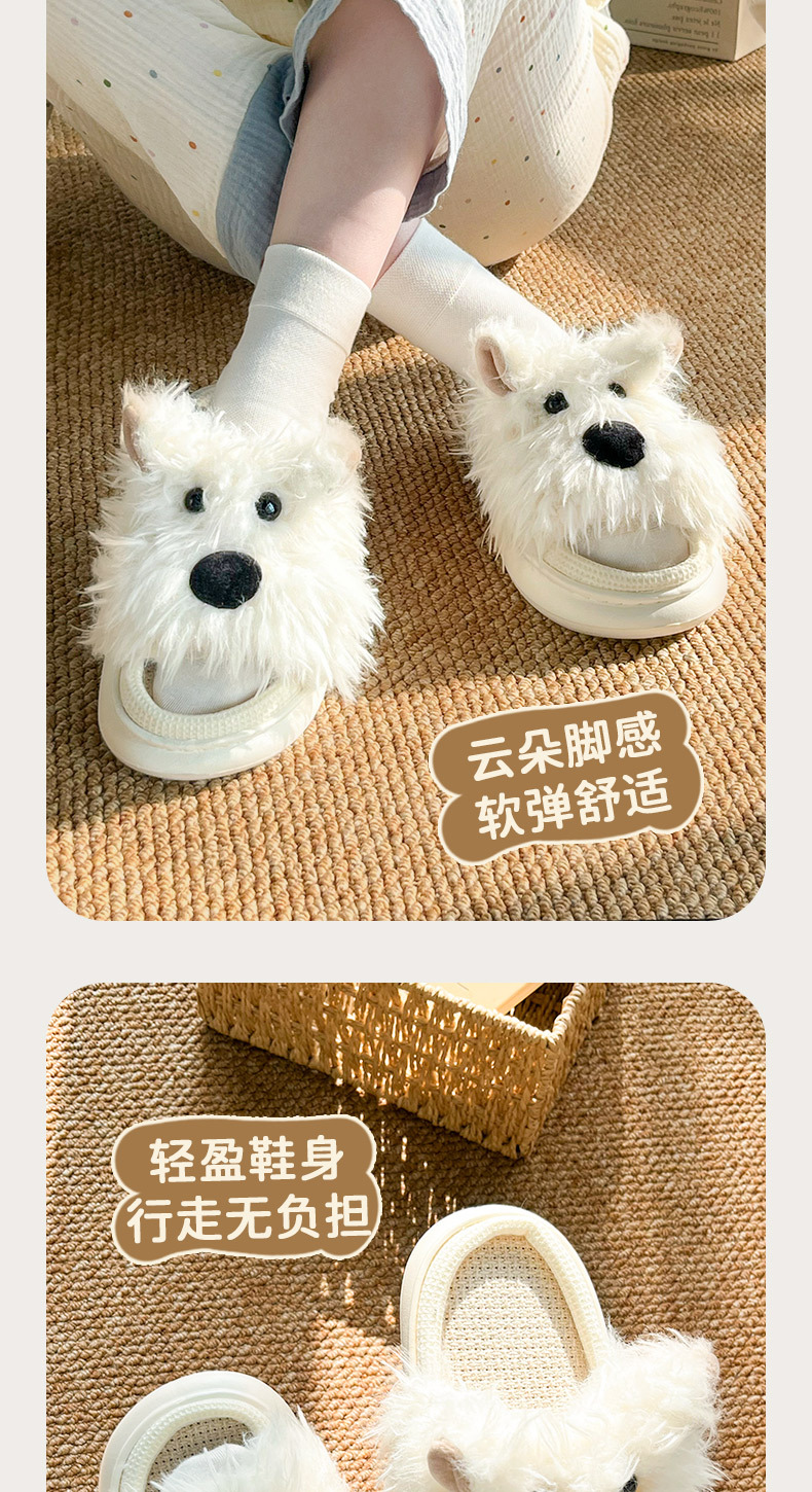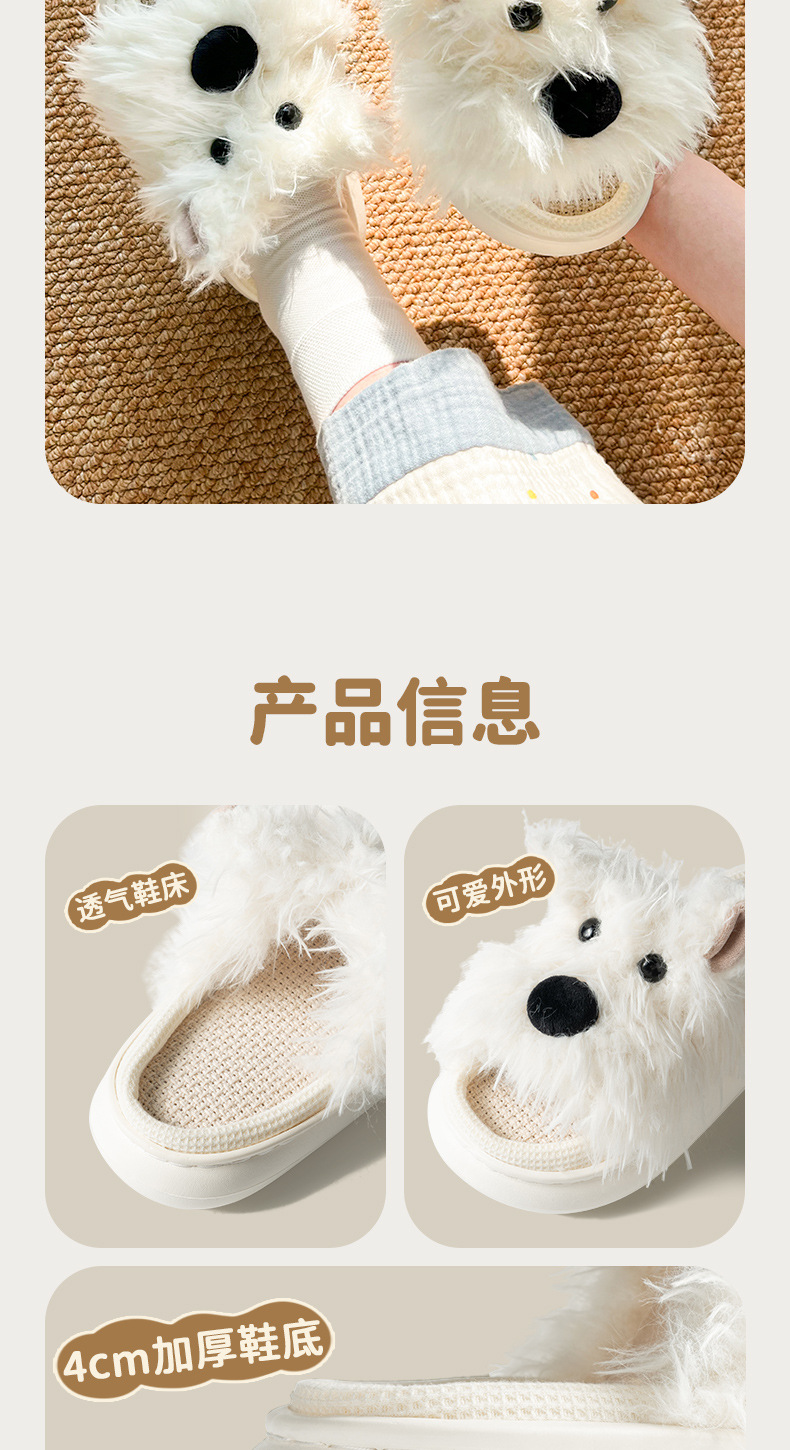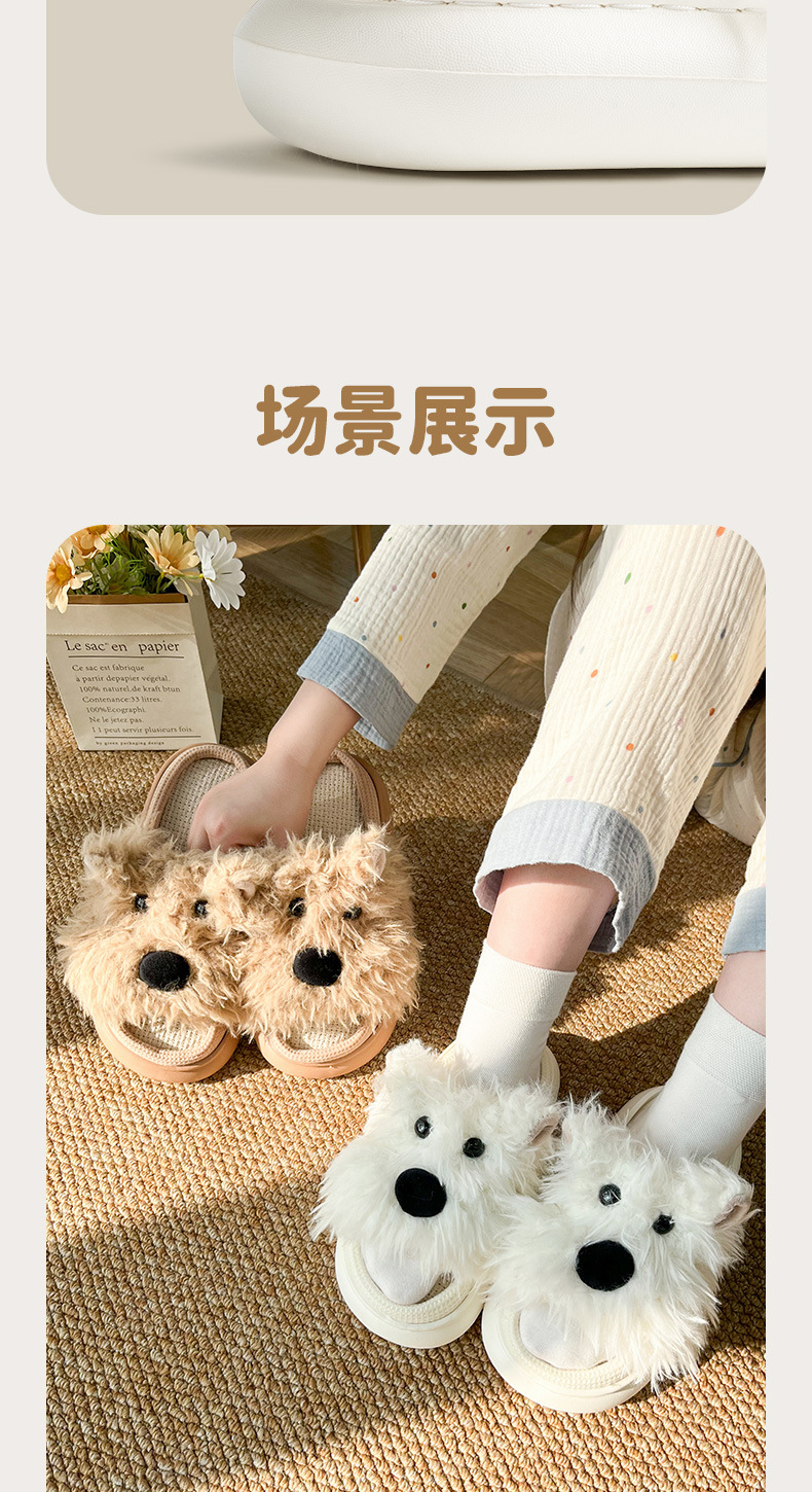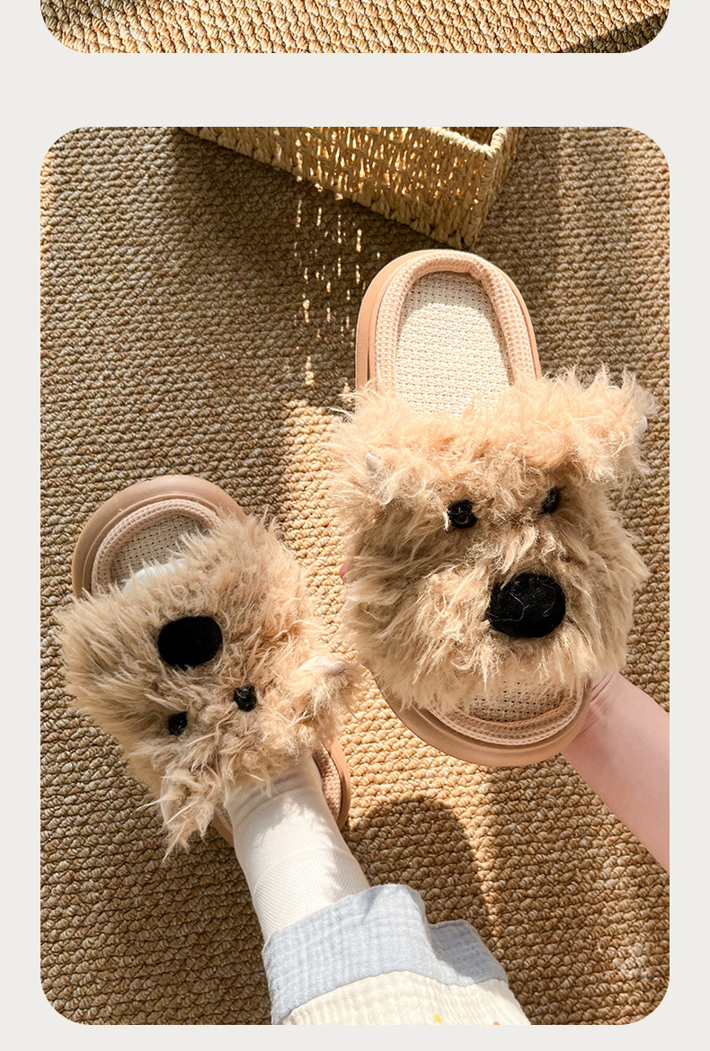 可愛卡通潦草小狗西高地亞麻拖鞋女2025新款四季通用室內居家棉麻