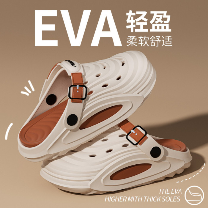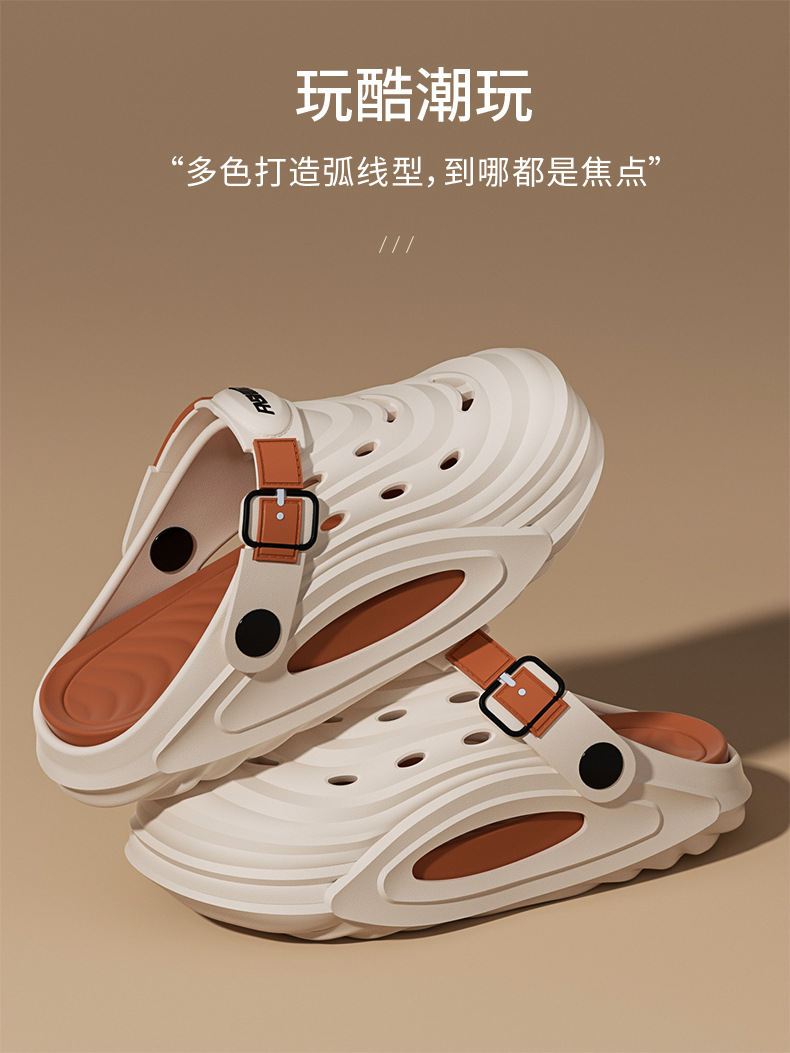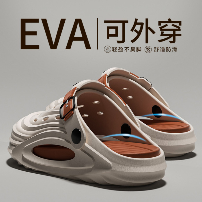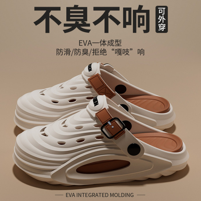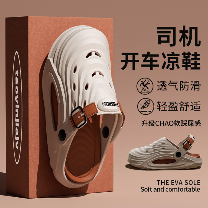 2025新款洞洞鞋男夏季外穿沙灘開車厚底防滑耐磨男士戶外運動拖鞋