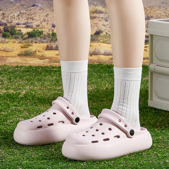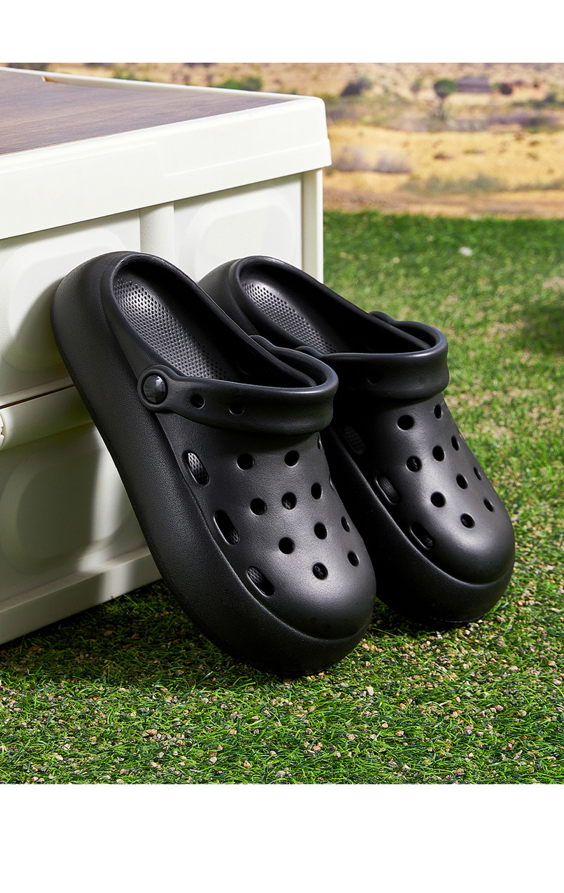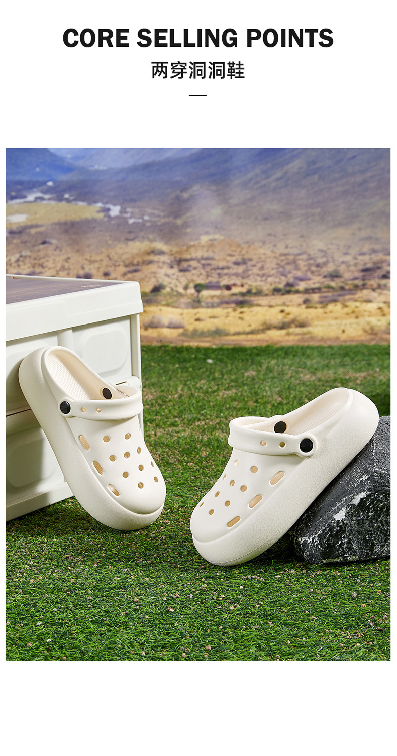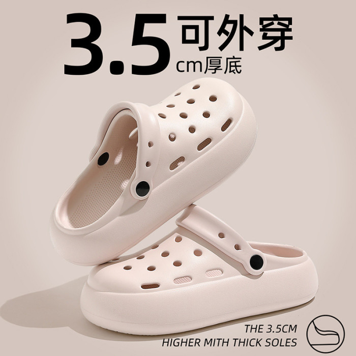 2025新款純色加厚洞洞鞋女士踩屎感軟包頭外穿女款涼拖鞋EVA居家