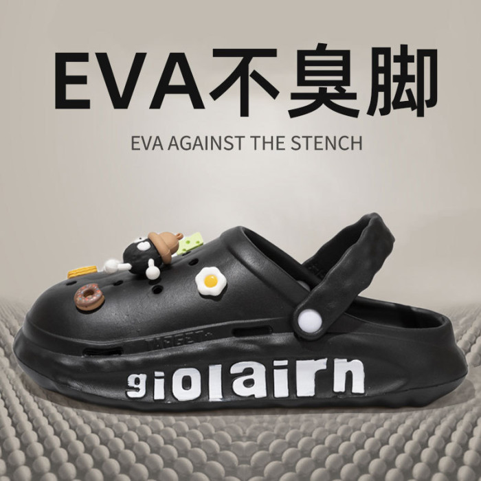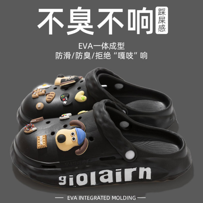 踩屎感洞洞鞋男士夏季外穿EVA防臭軟底沙灘防滑運動包頭涼拖鞋男