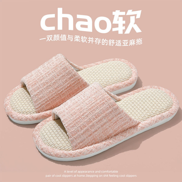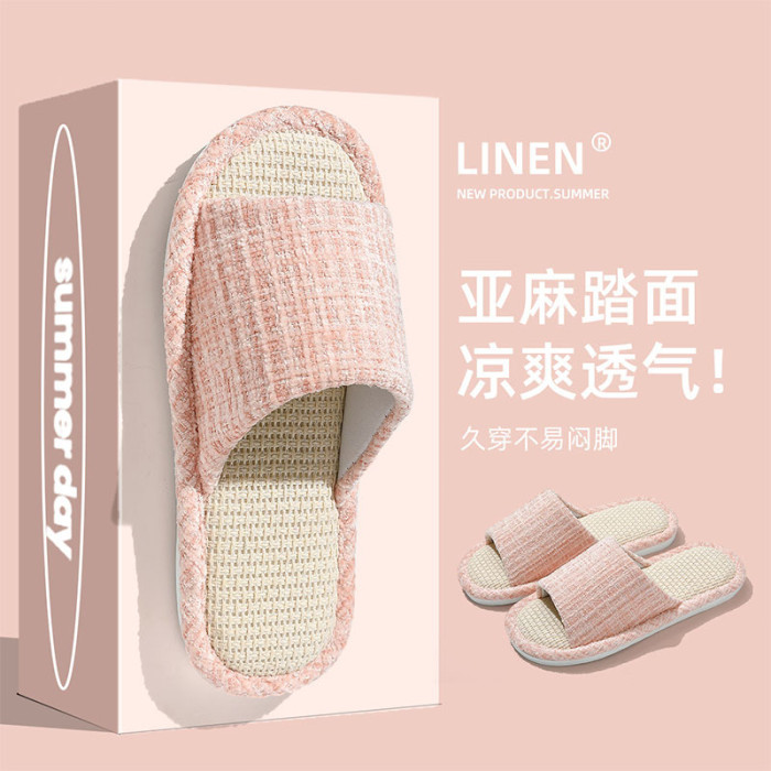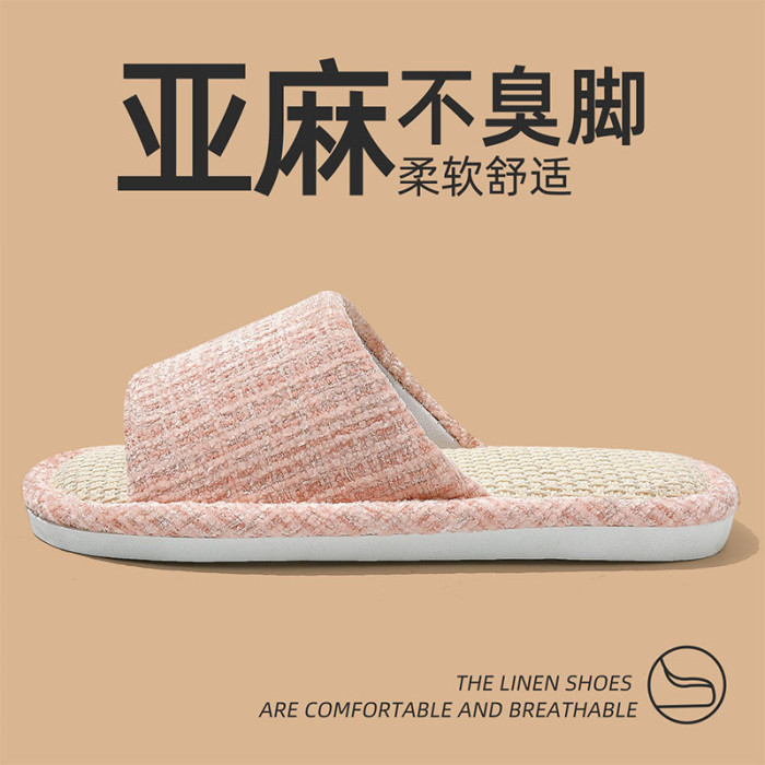 透氣吸汗亞麻拖鞋女款夏天家居室內靜音防滑日式四季棉麻拖鞋男士