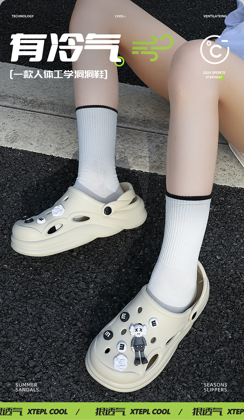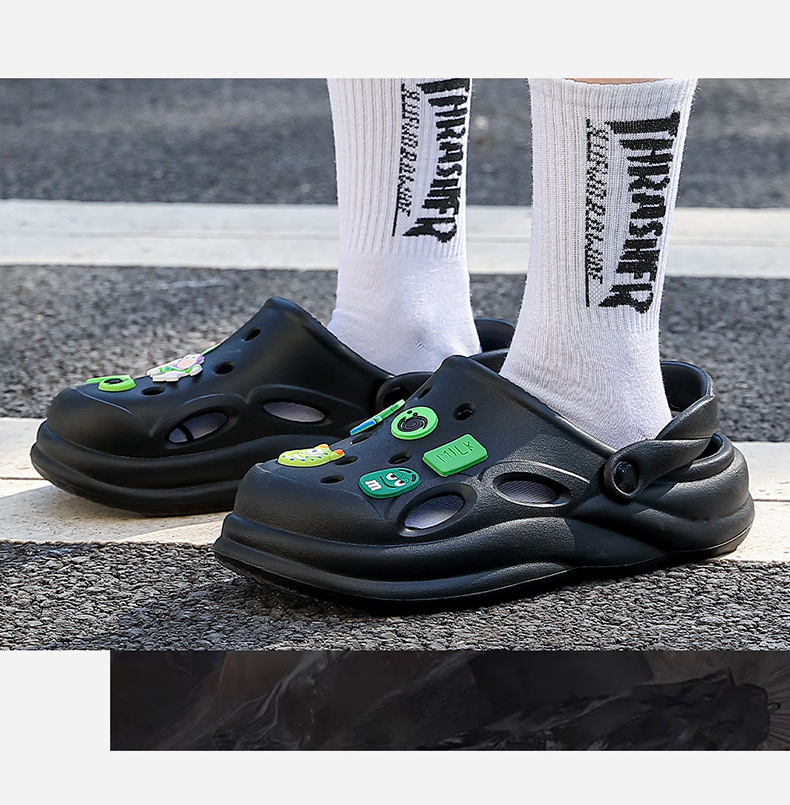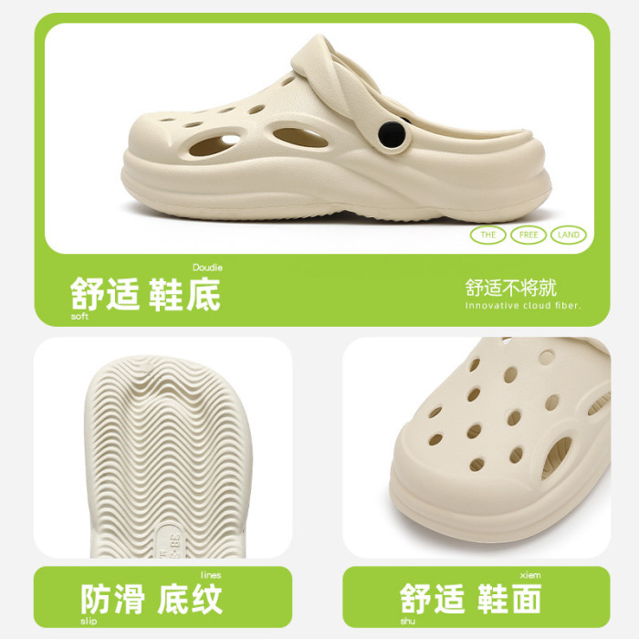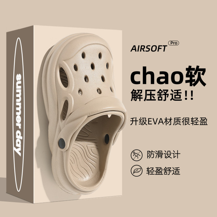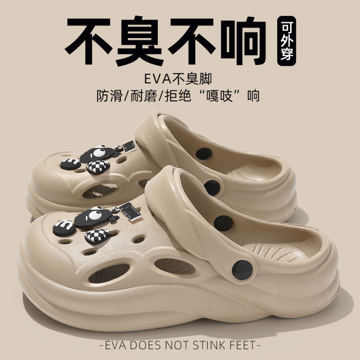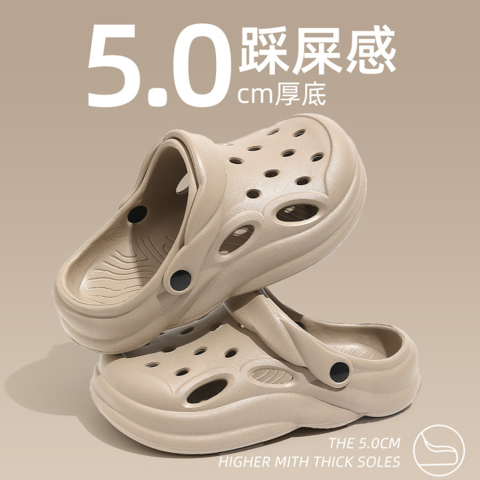 洞洞鞋男款夏季外穿2025新款沙灘厚底防滑踩屎感外出開車涼拖男士