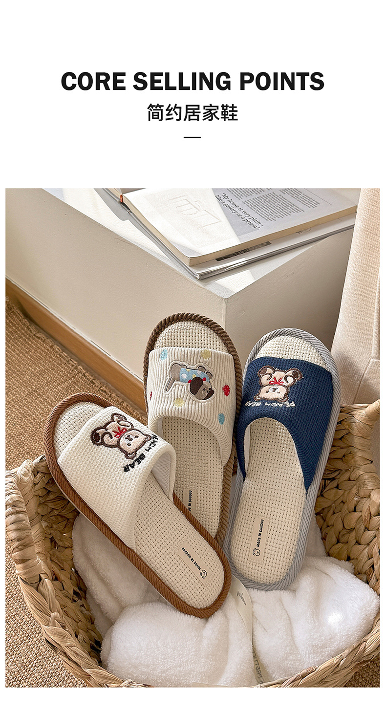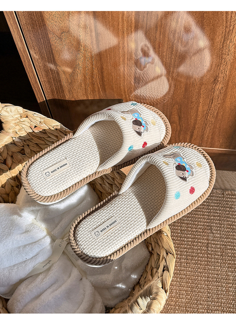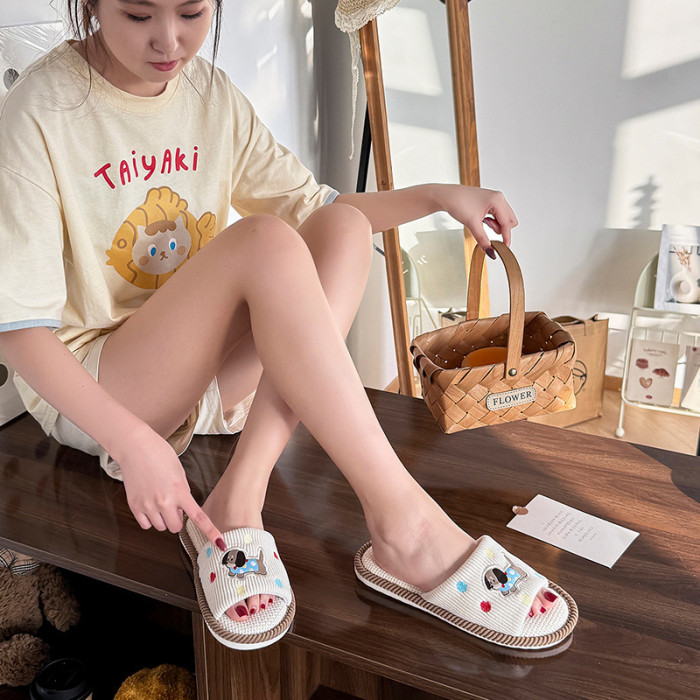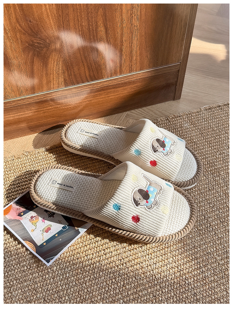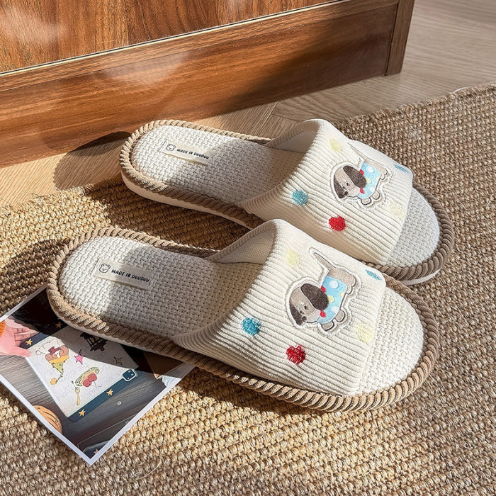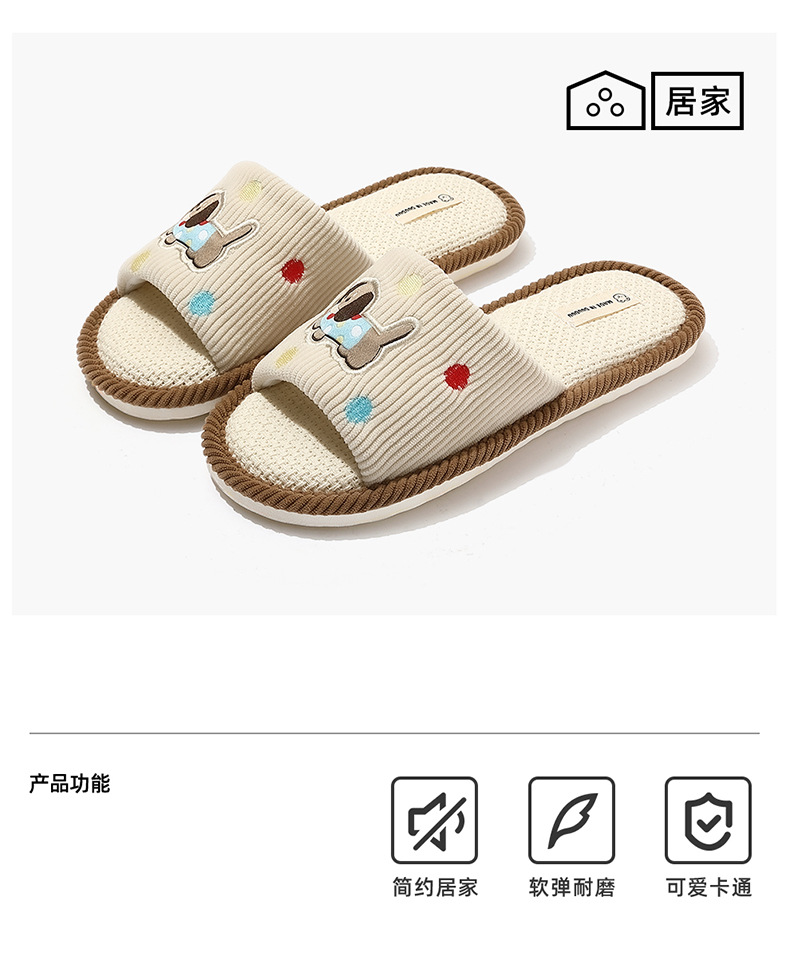 亞麻拖鞋女四季新款卡通靜音室內軟底防滑棉麻家居透氣情侶拖鞋春