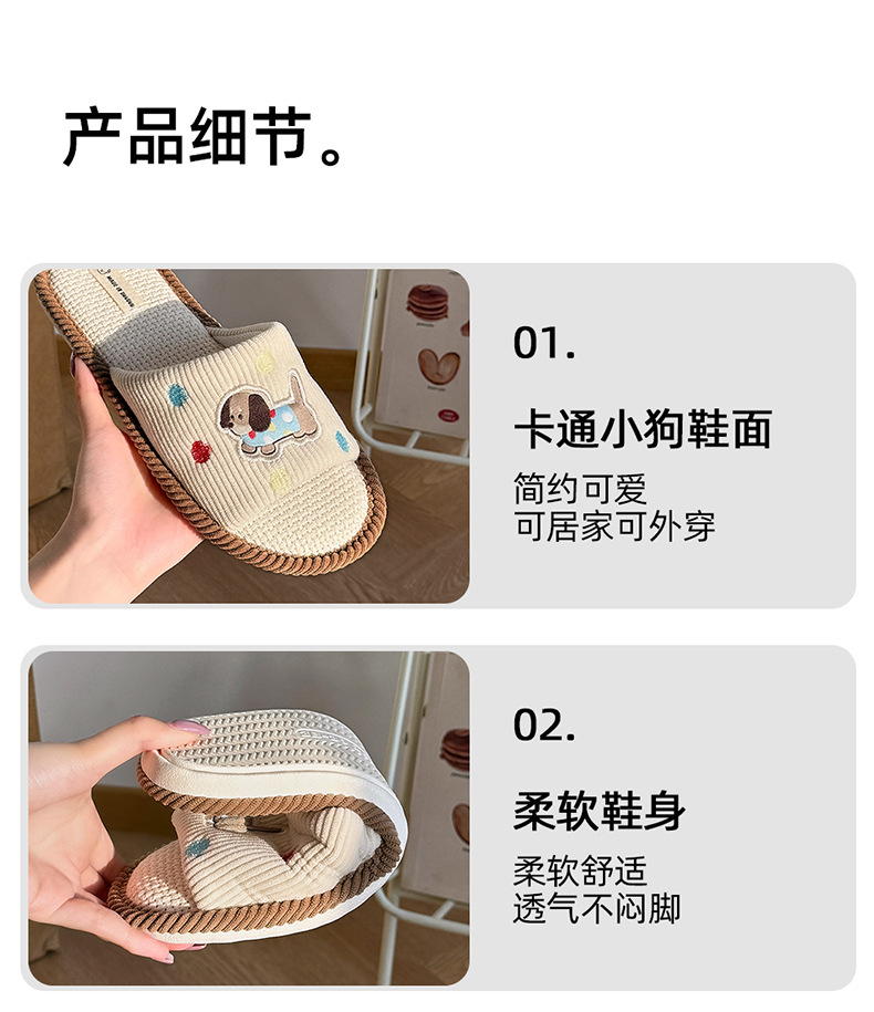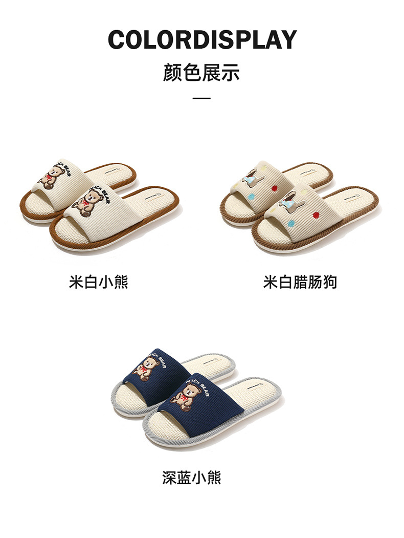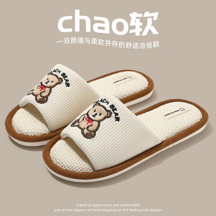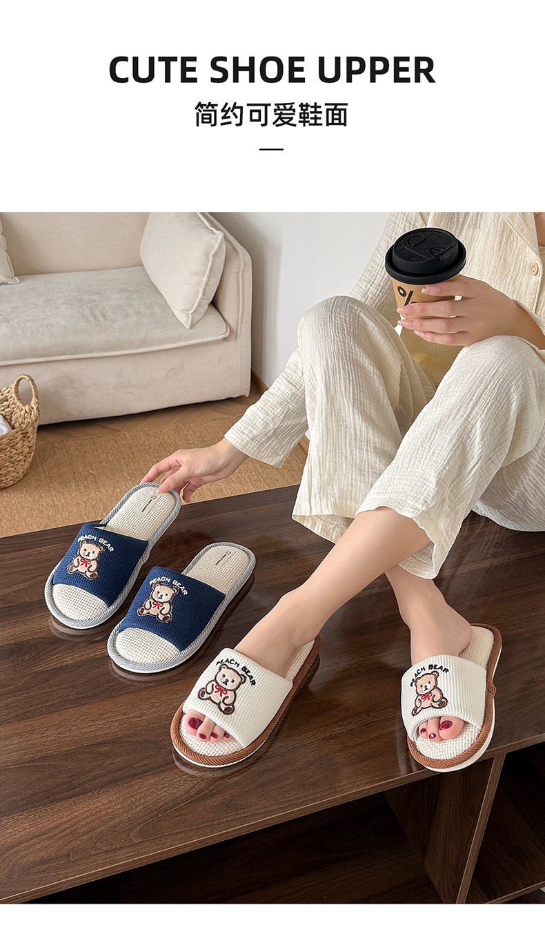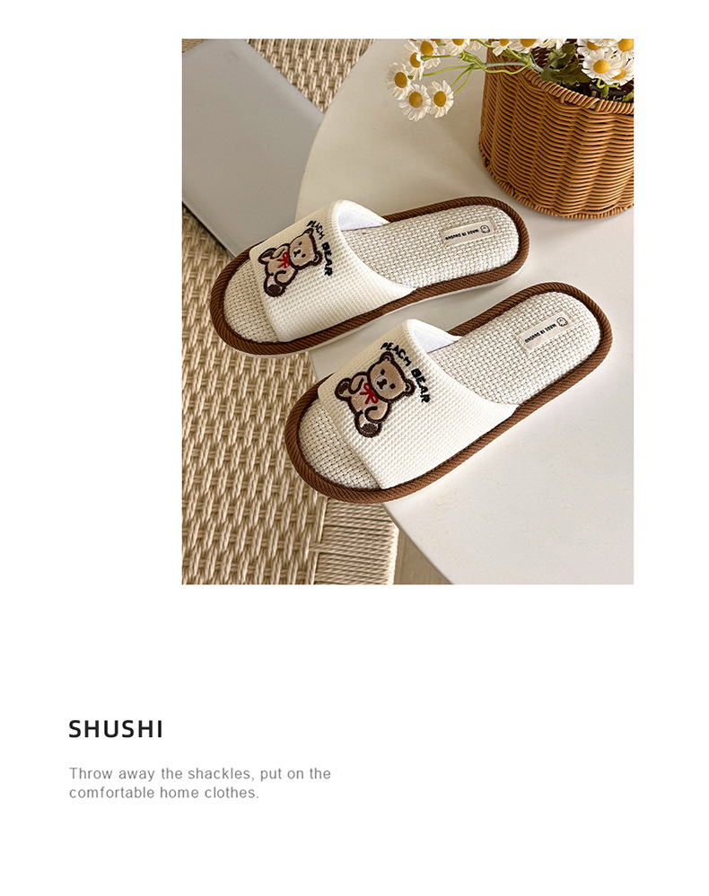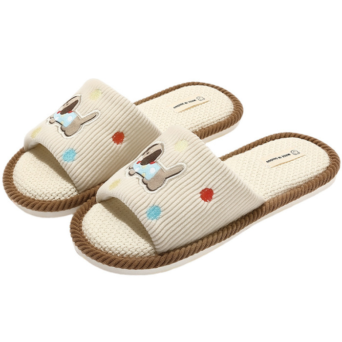 亞麻拖鞋女四季新款卡通靜音室內軟底防滑棉麻家居透氣情侶拖鞋春