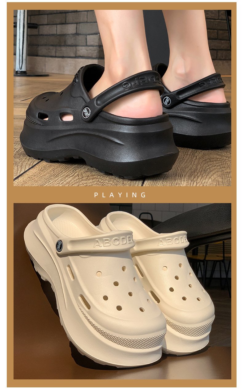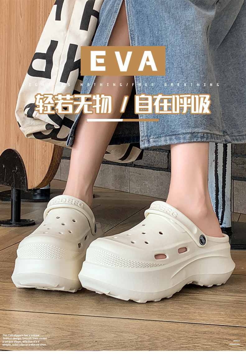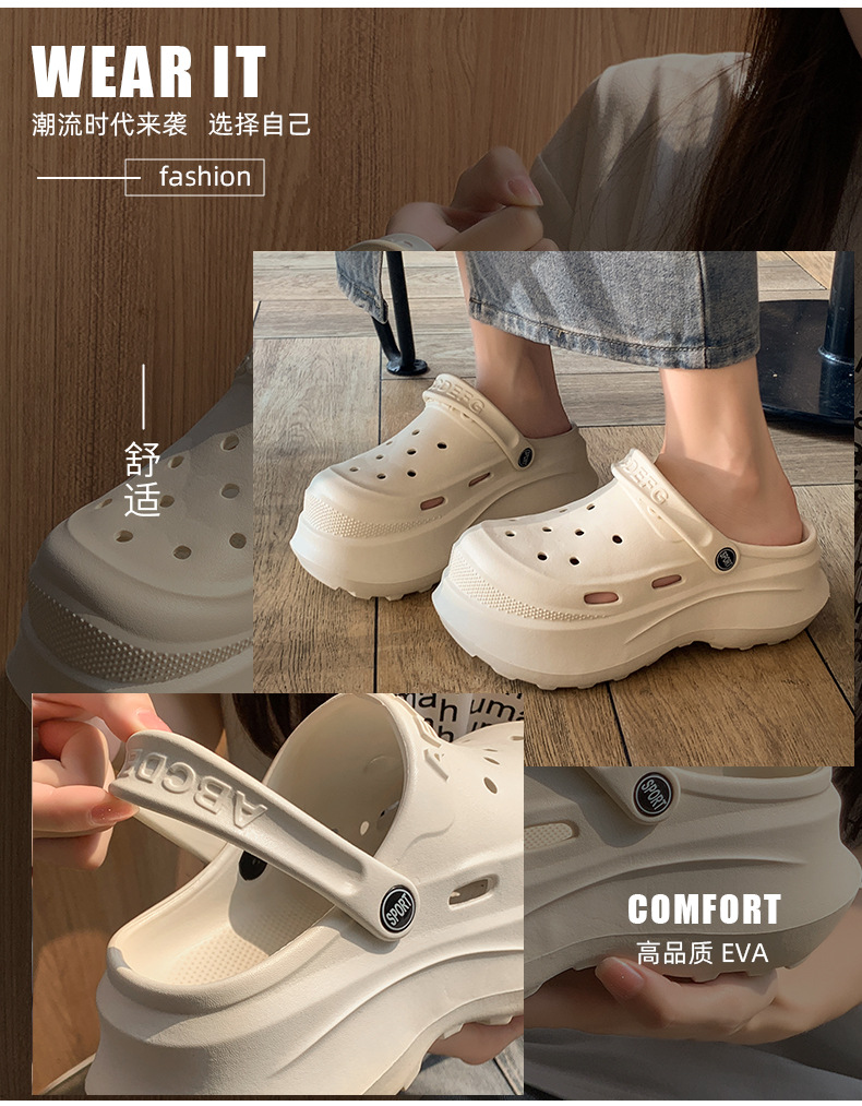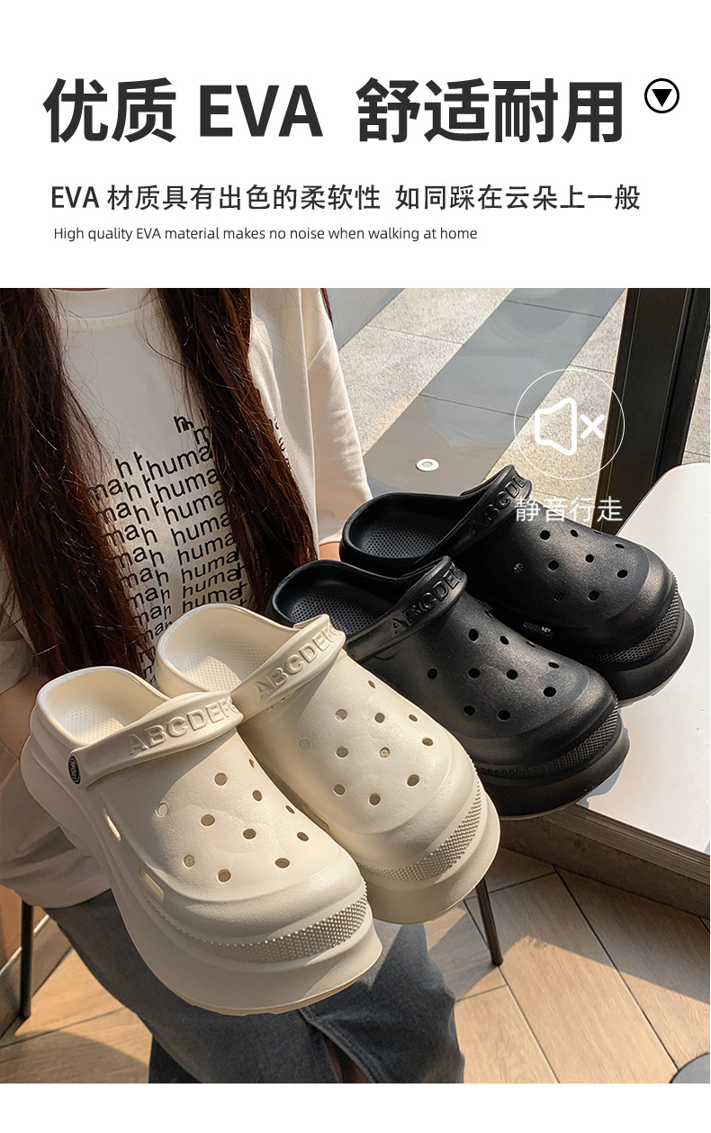厚底增高洞洞鞋女款2025新款夏季外穿沙灘eva防滑軟底拖鞋女