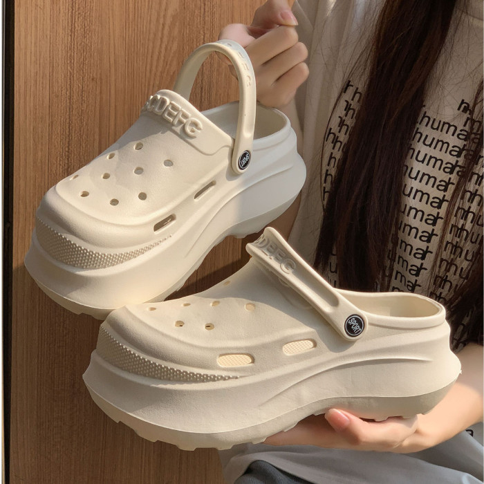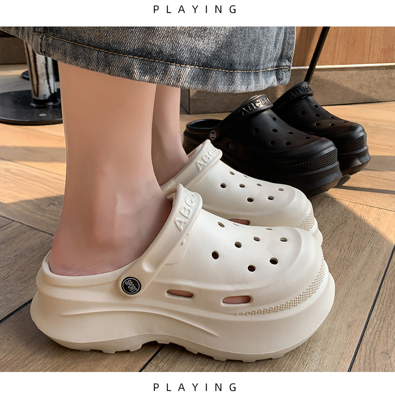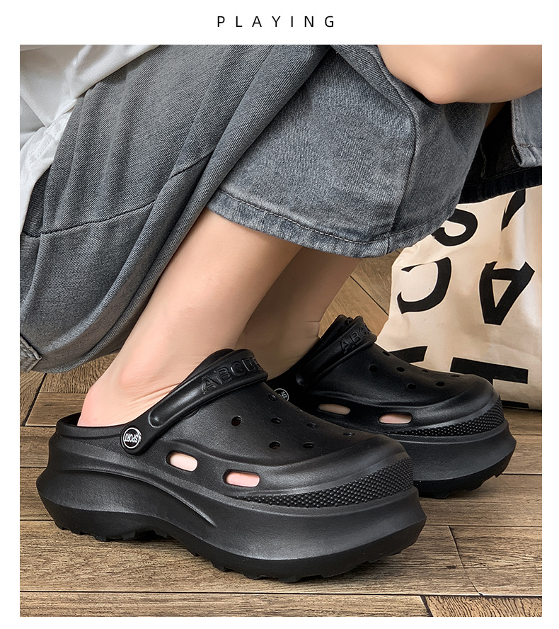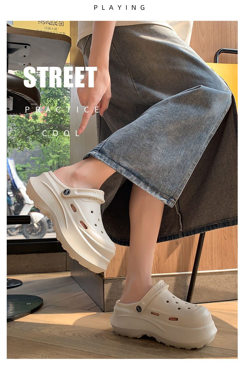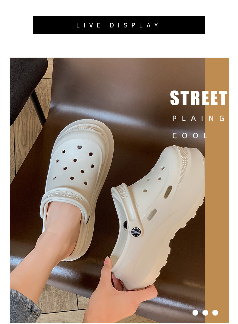 厚底增高洞洞鞋女款2025新款夏季外穿沙灘eva防滑軟底拖鞋女