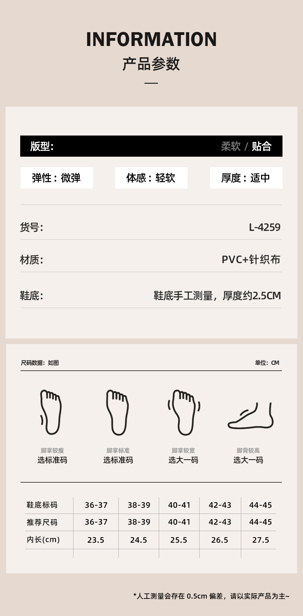 | 鞋底厚度 | 1.5cm(含)-3.5cm(不含) |