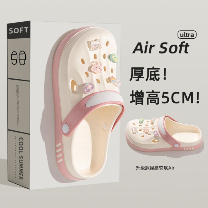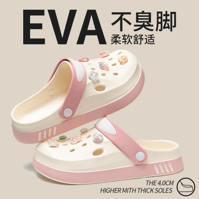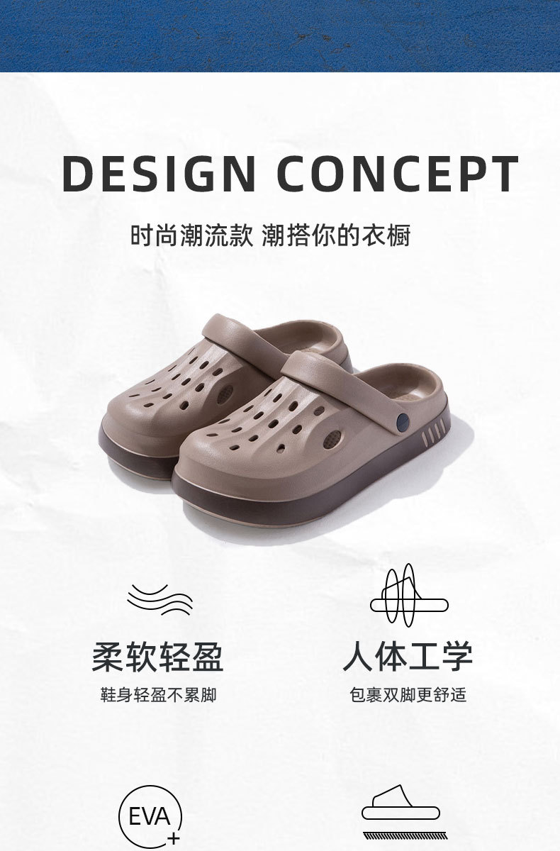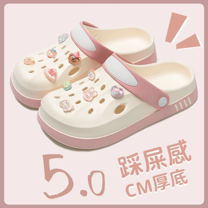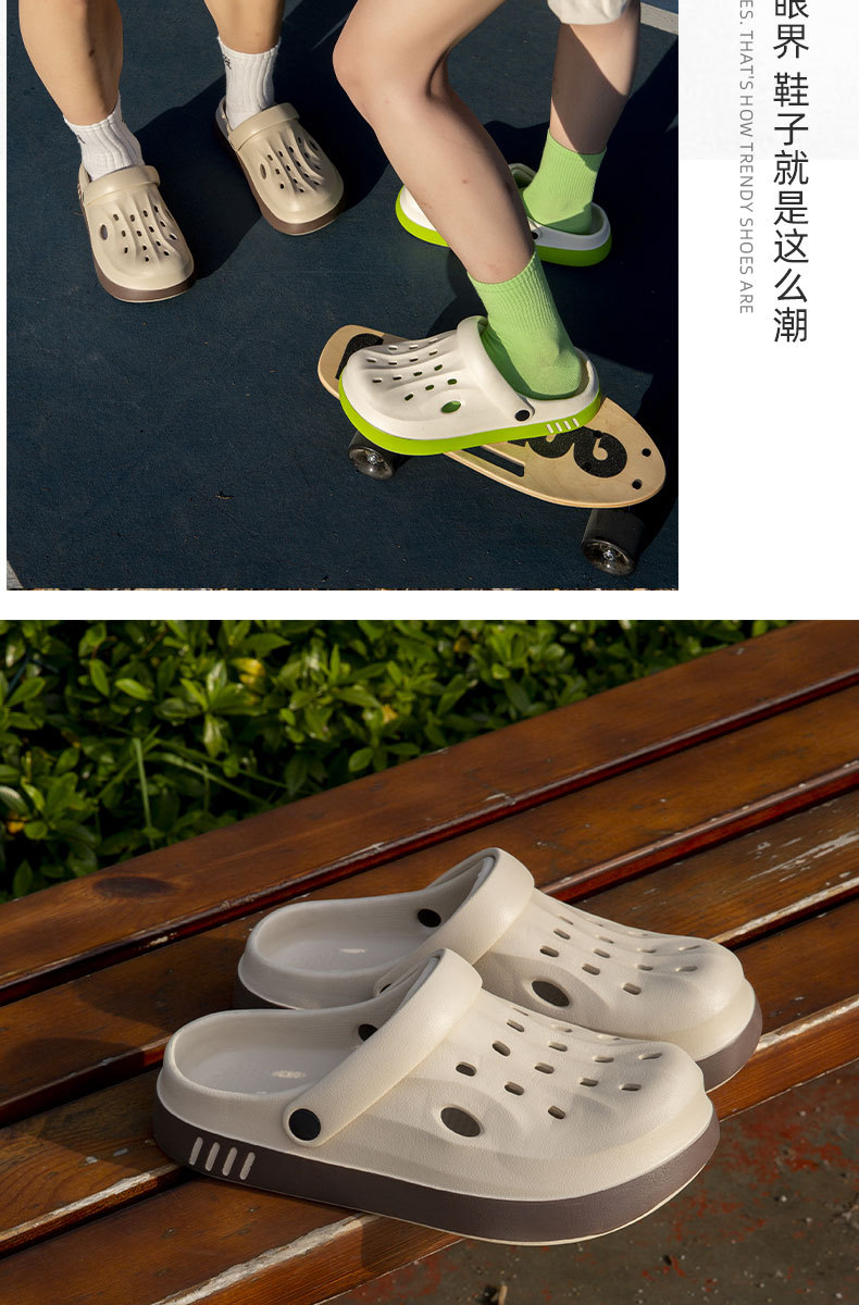 夏季洞洞鞋女士外穿踩屎感網紅超火沙灘防滑防臭包頭涼拖鞋男