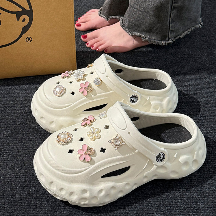 厚底洞洞鞋女款夏季外穿網紅沙灘防滑戶外兩穿涼鞋防臭包頭拖鞋男