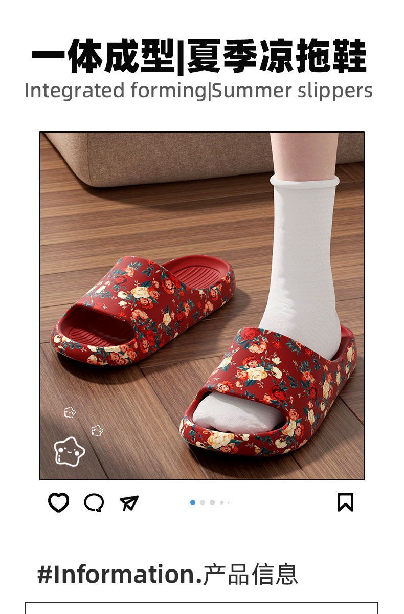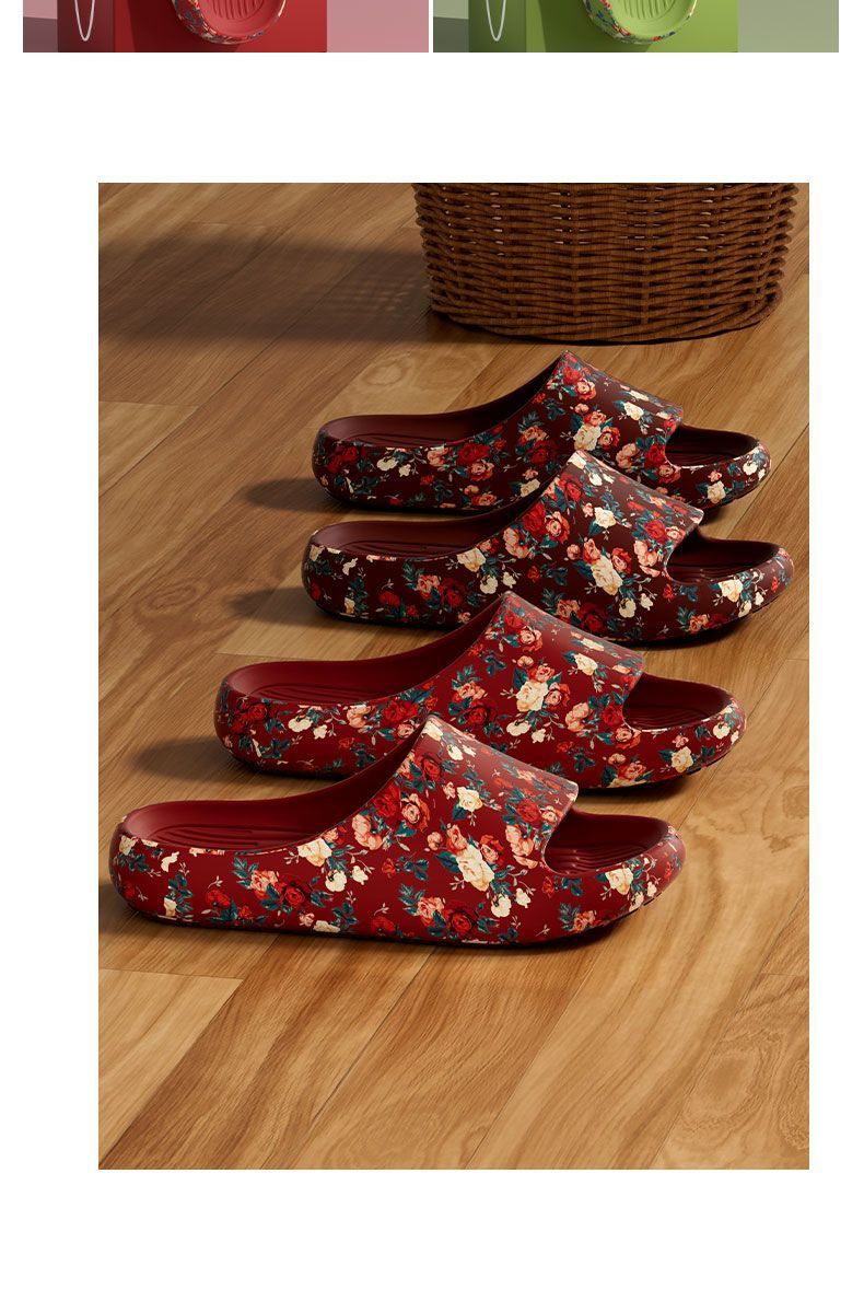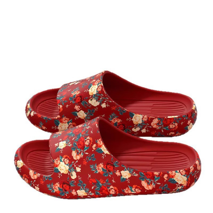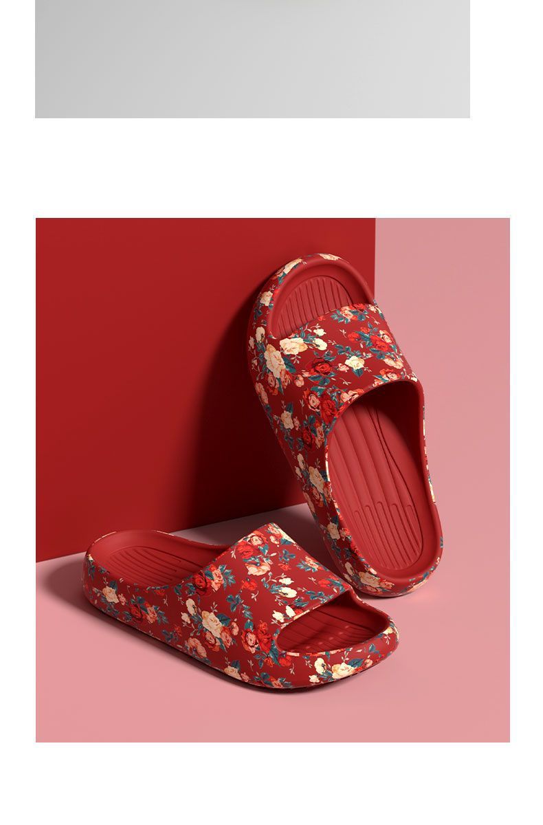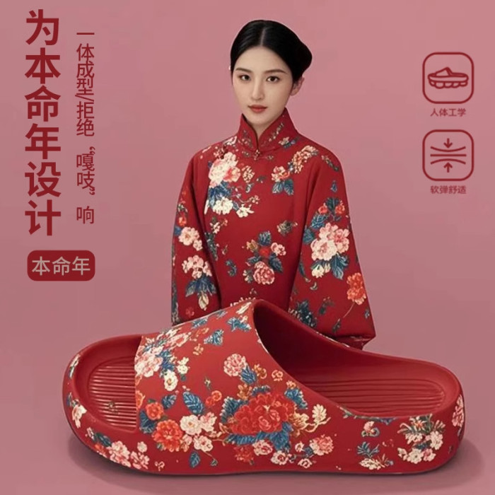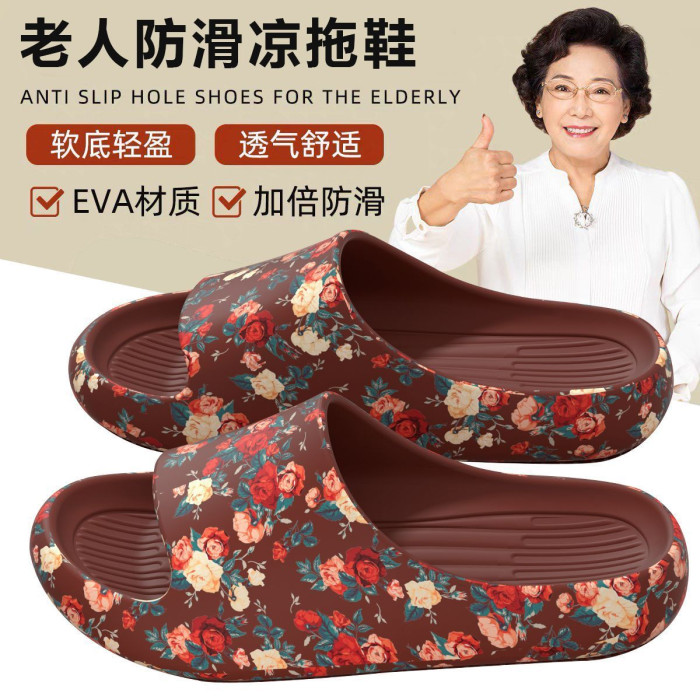 老人專用防滑拖鞋女夏季外穿防臭厚底本命年紅色防滑特大碼涼拖男