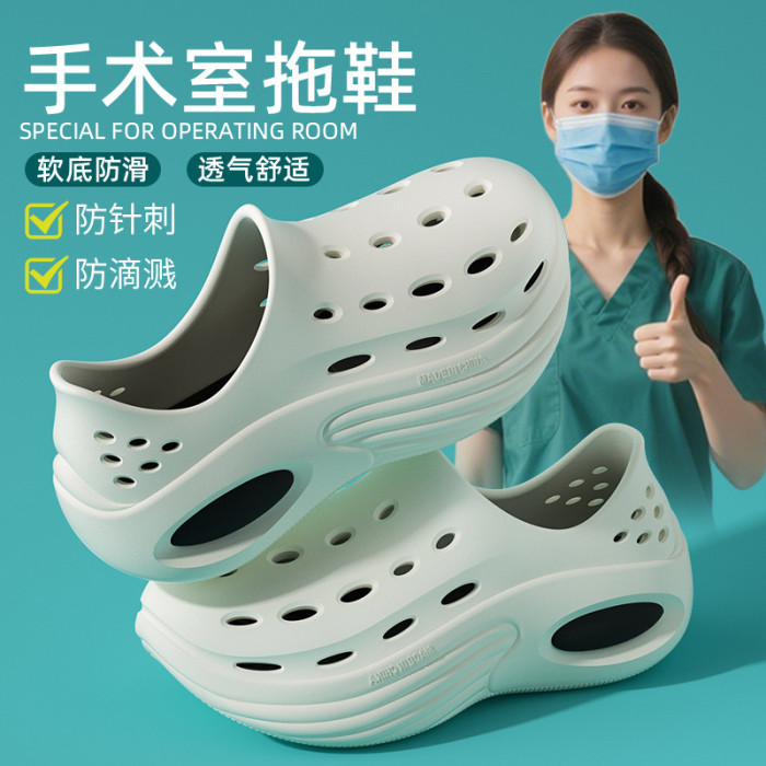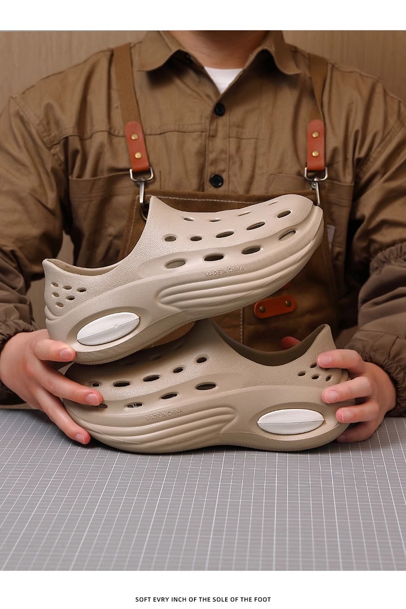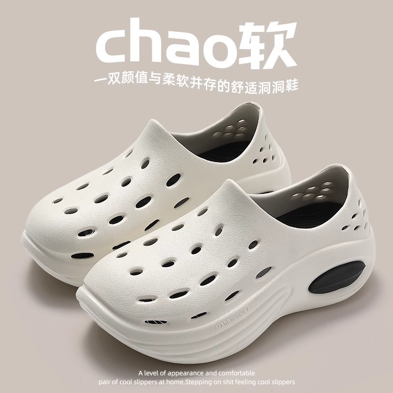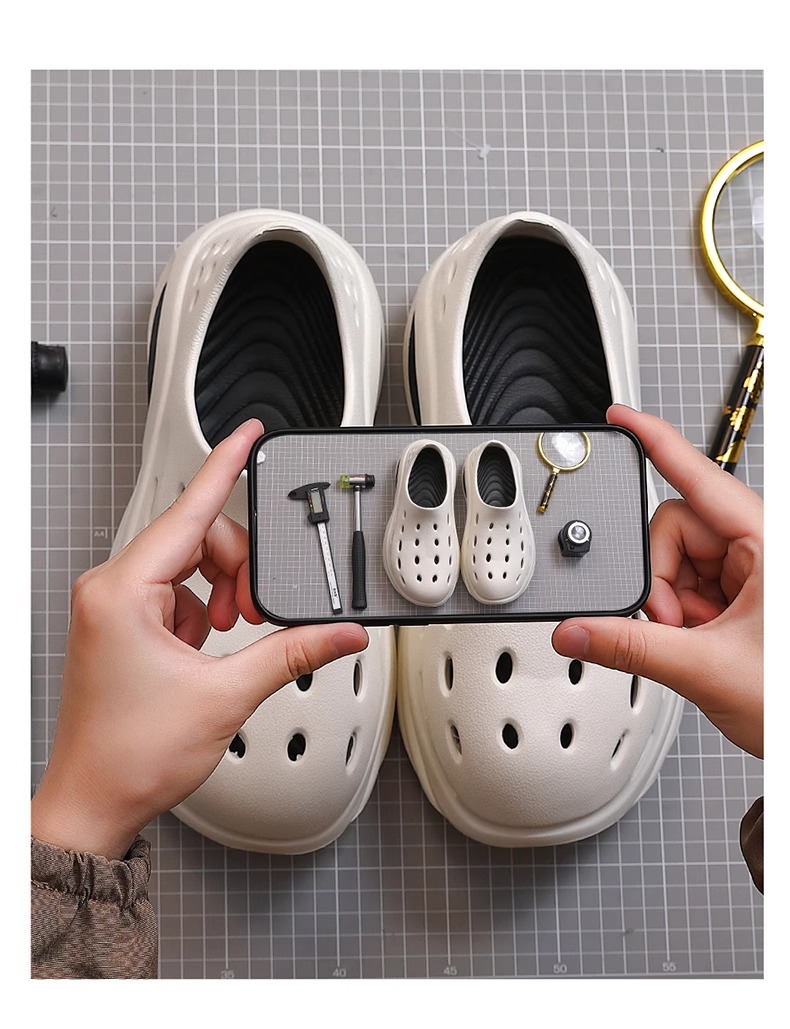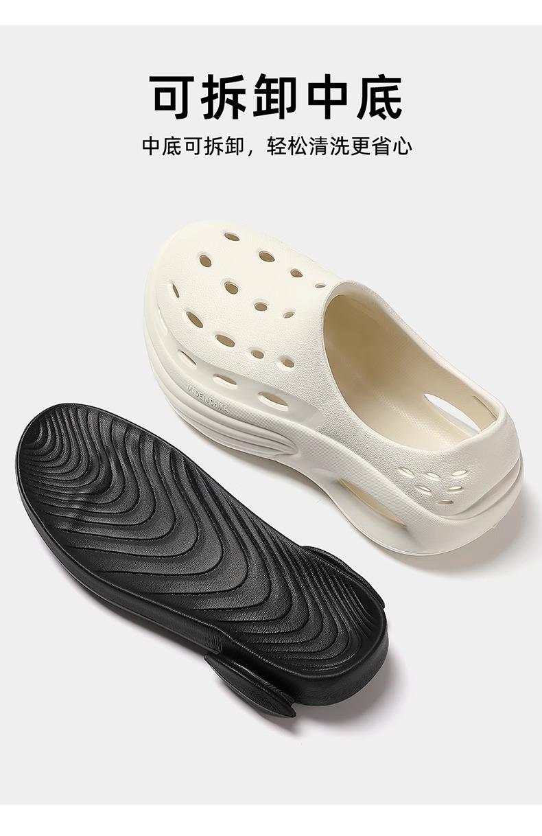 厚底踩屎感洞洞鞋男士夏季外穿防滑透氣eva防臭包頭沙灘涼拖鞋女