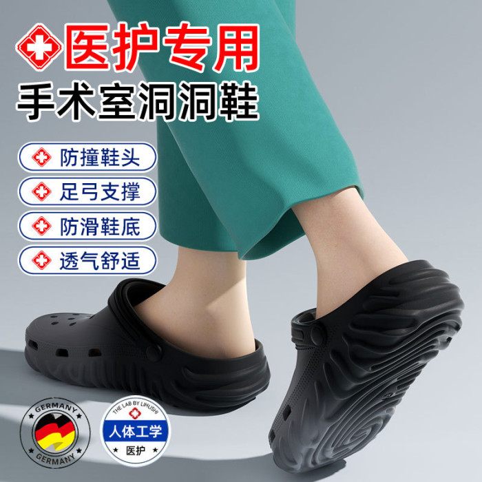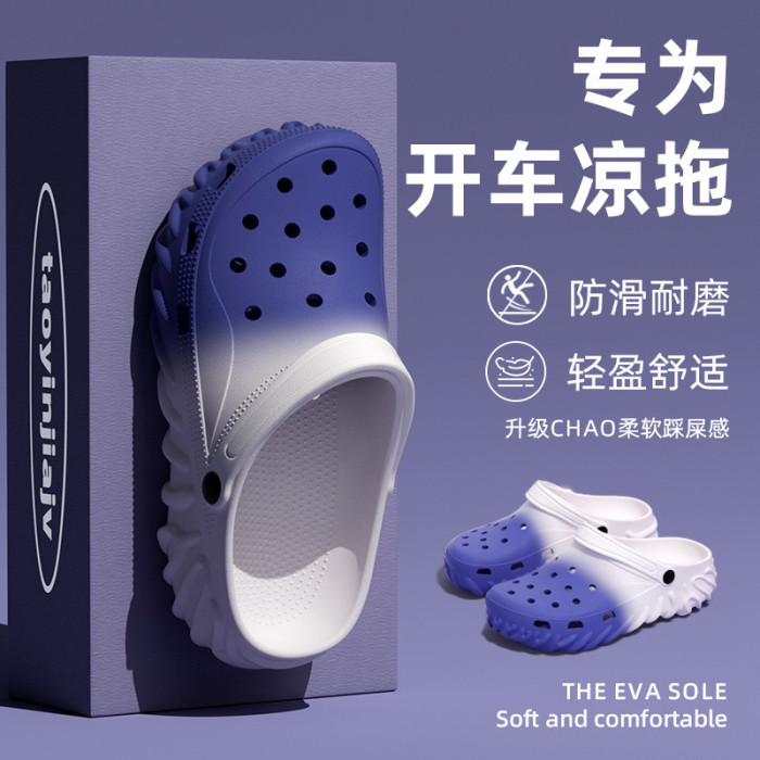漸變色包頭涼拖鞋男士夏季外穿防滑防臭厚底防針刺手術室洞洞鞋男