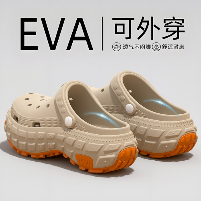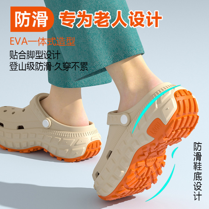 老人防滑專用洞洞鞋男士2025新款夏季外穿厚底耐磨透氣eva涼拖鞋