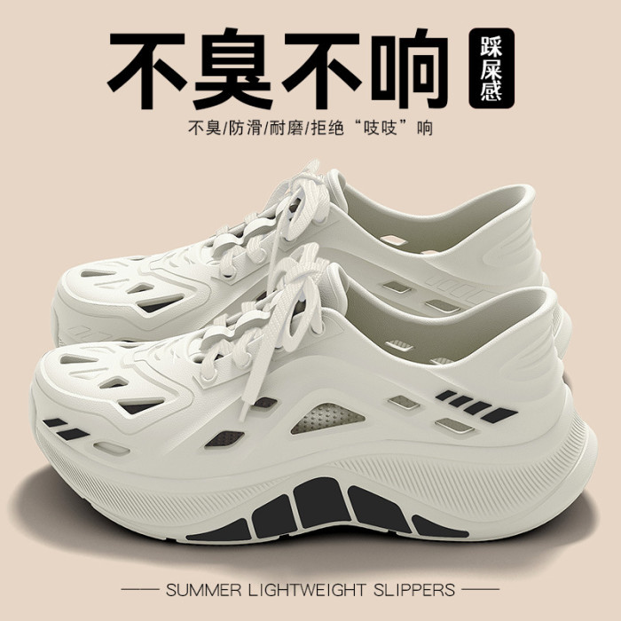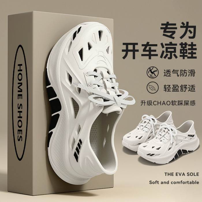 防臭洞洞鞋男士夏季外穿2025新款厚底開車戶外軟底防滑耐磨涼鞋男