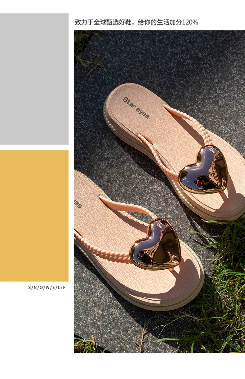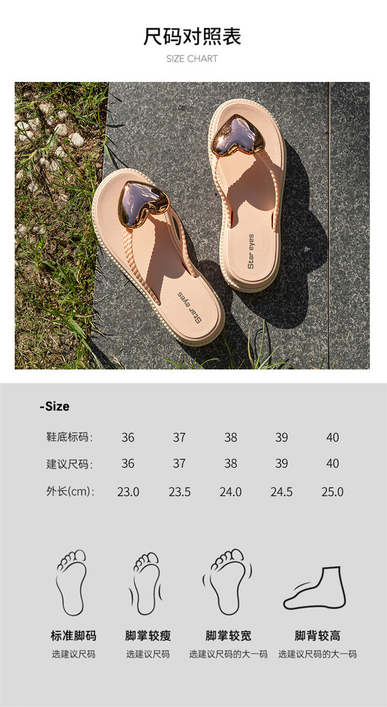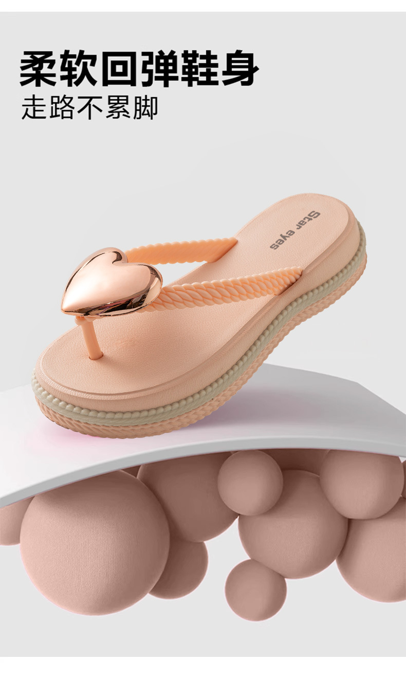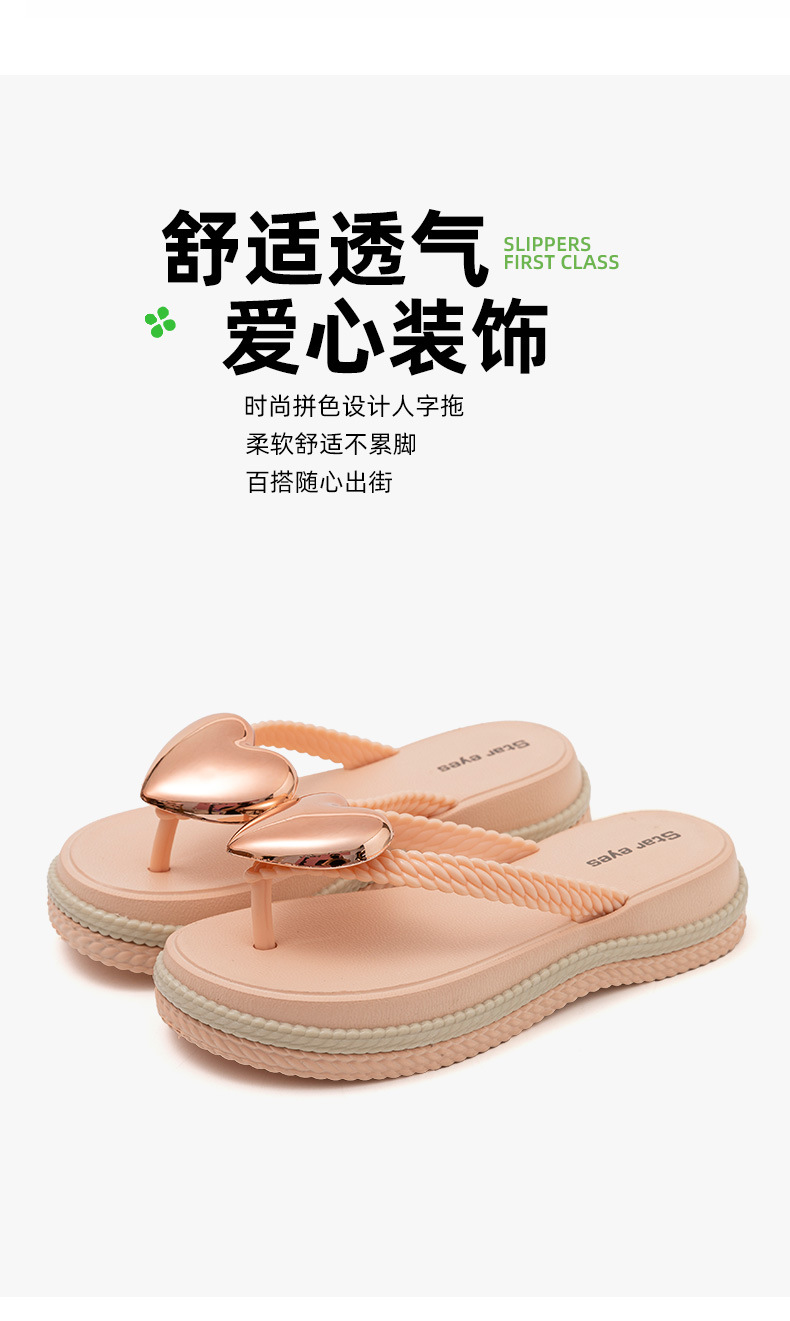 愛心浪花厚底人字拖時尚外穿夾腳拼色防滑百搭海邊度假沙灘涼拖鞋