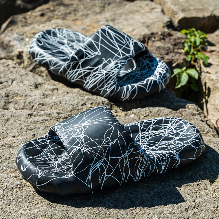 時尚塗鴉拖鞋男夏季2025新款外穿厚底踩屎感居家防滑防臭涼拖鞋女