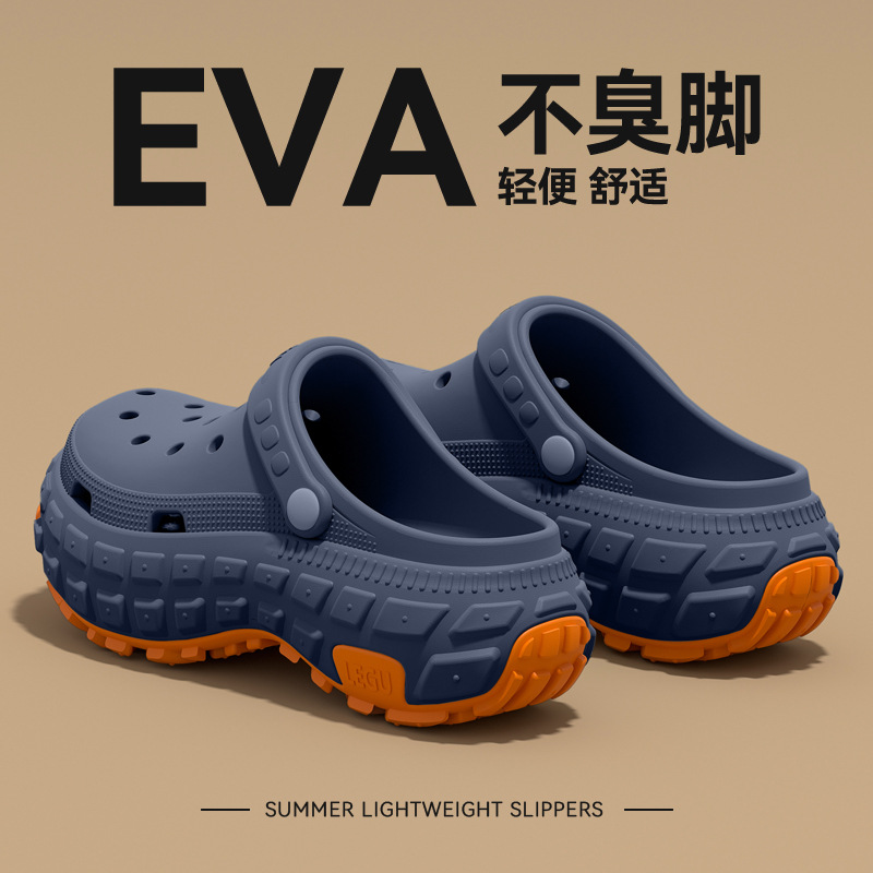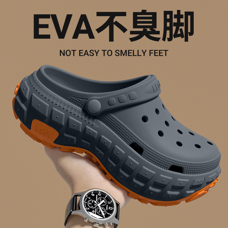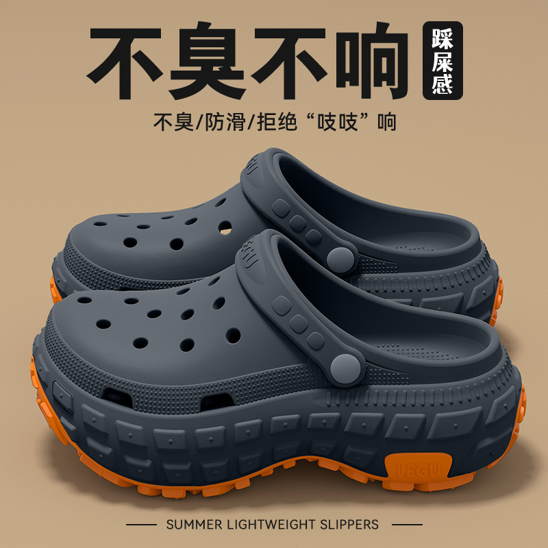 洞洞鞋男士夏季外穿防臭2025新款潮流厚底耐磨防滑開車倆穿涼拖男