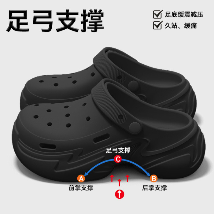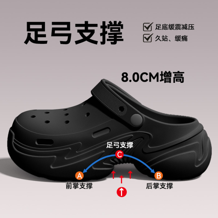 足弓支撐洞洞鞋女士夏季外穿2025新款厚底增高久站不累腳防滑涼拖