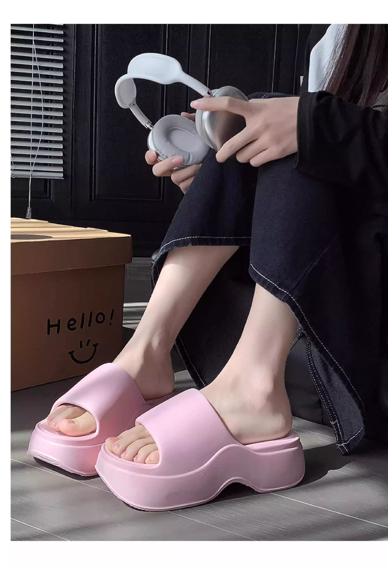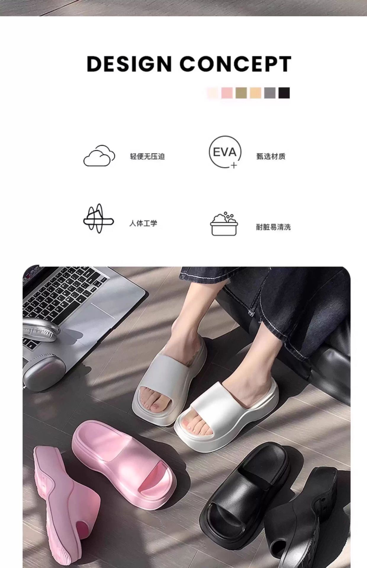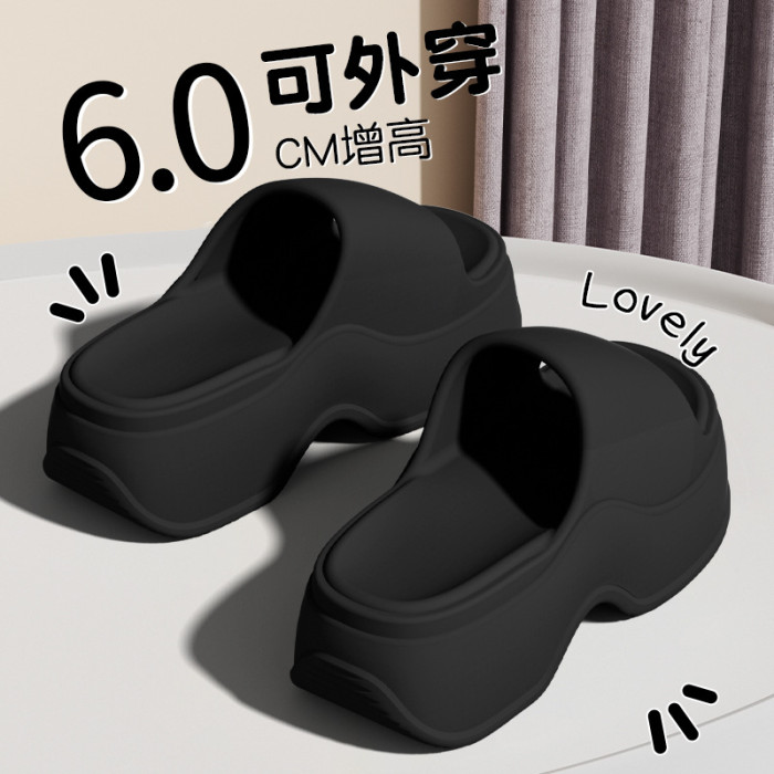 6.0cm踩屎感涼拖鞋女士夏季家居厚底增高eva軟底外穿時尚沙灘拖鞋