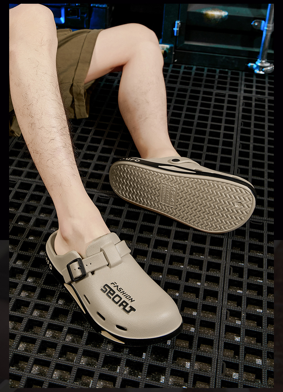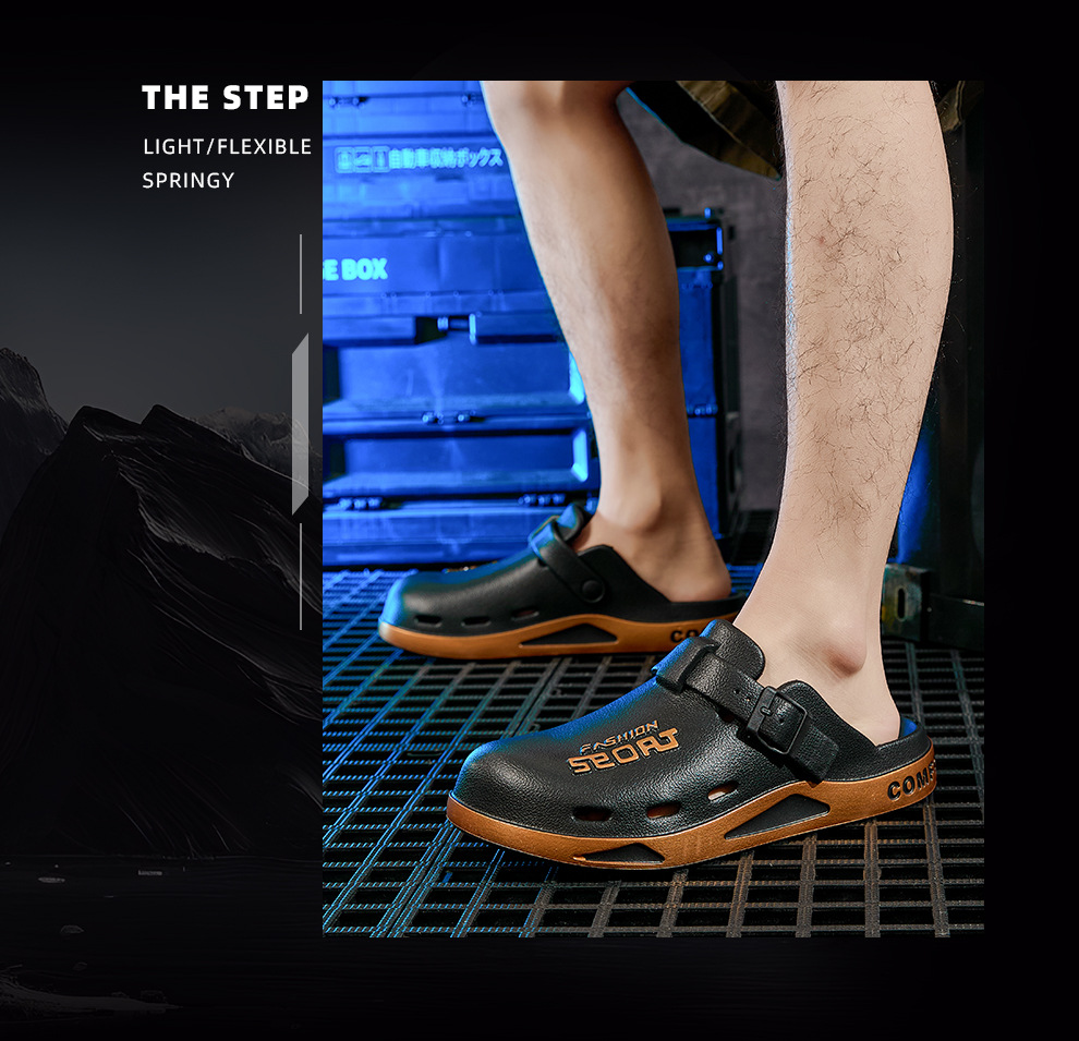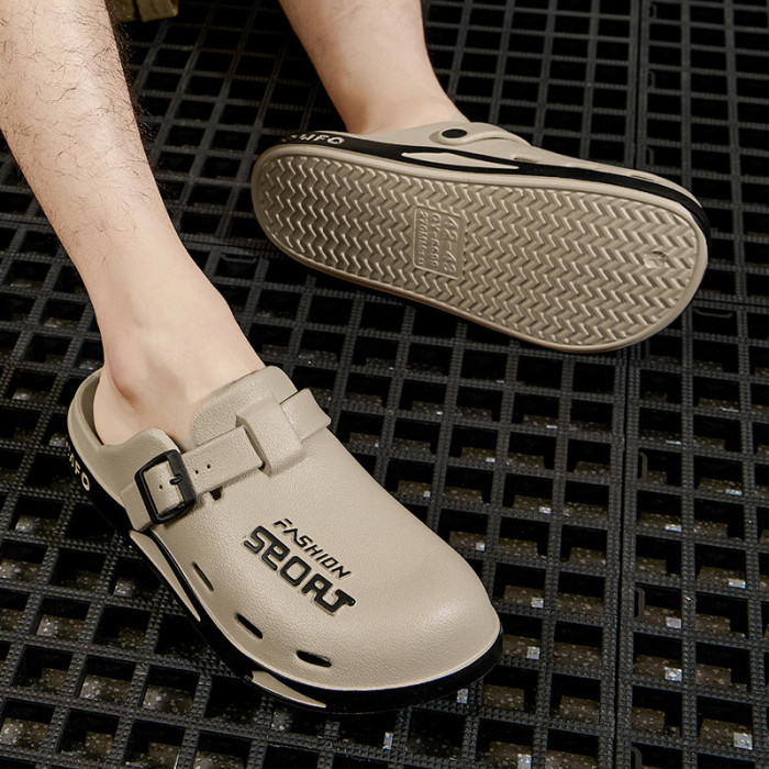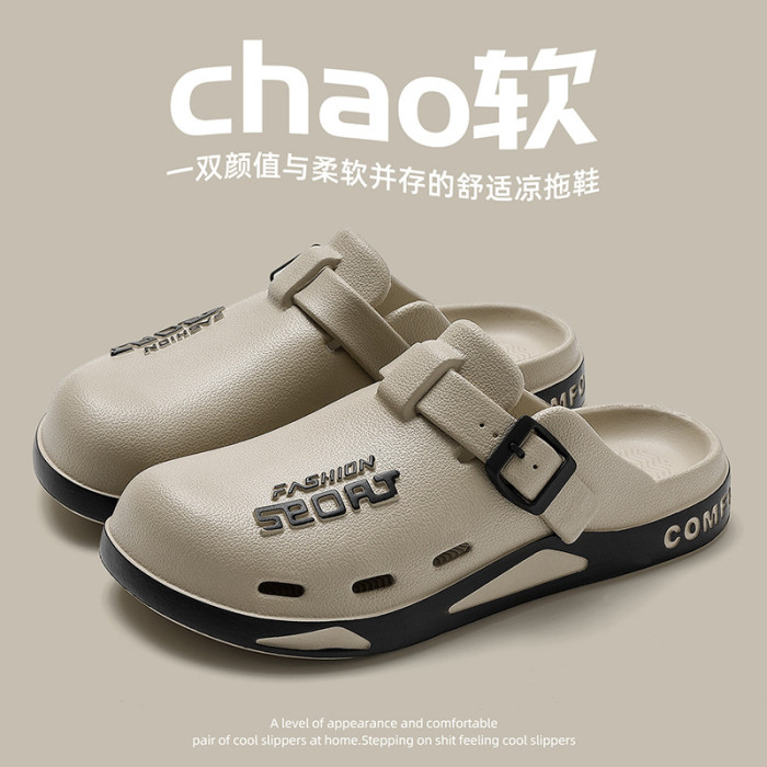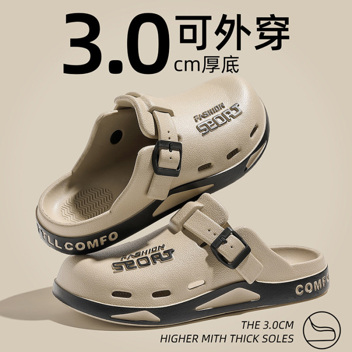 男士博肯洞洞鞋夏季外穿休閒eva軟底家居室內防滑包頭拖鞋男