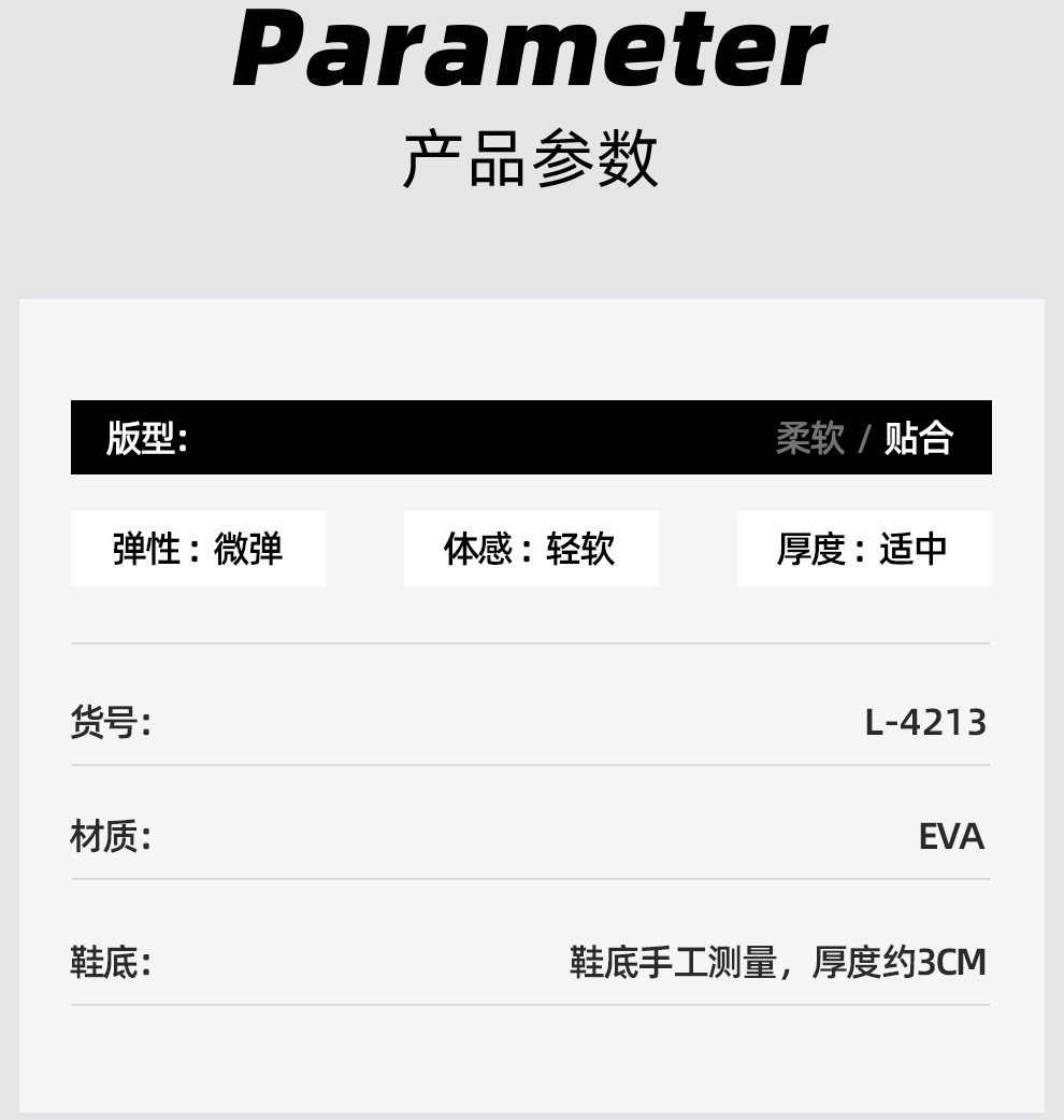 | 鞋底厚度 | 1.5cm(含)-3.5cm(不含) |