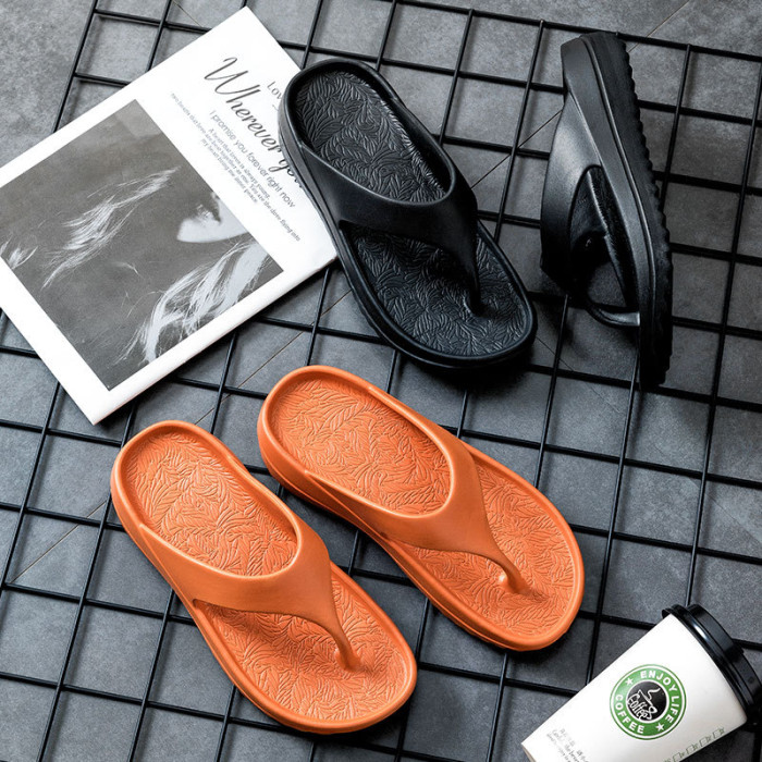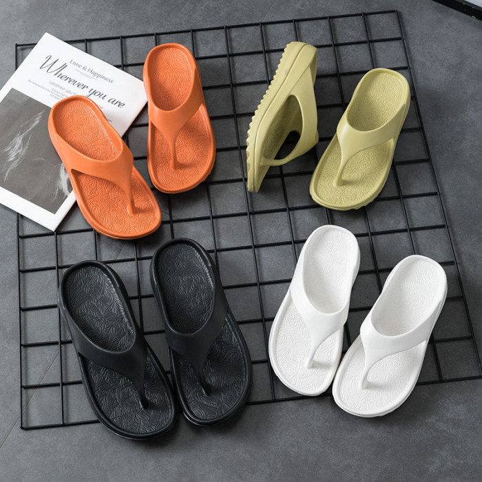 網紅極簡風純色情侶厚底人字拖女外穿防滑軟底居家拖鞋